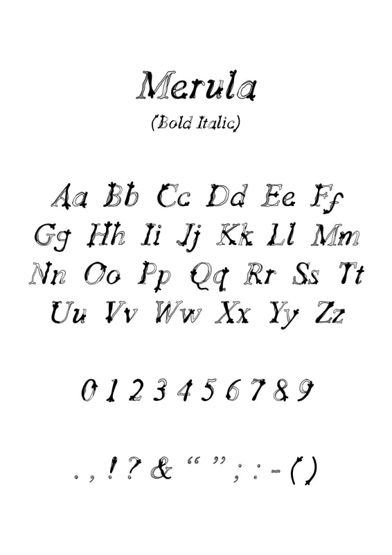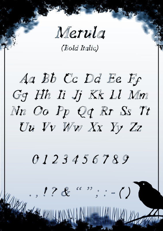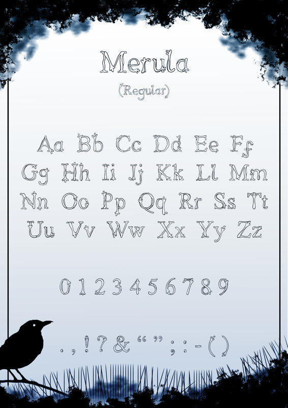 by my original photograph of blackbird footprints in the snow. However I decided to name this typeface after the Latin name for Blackbird "Merula".