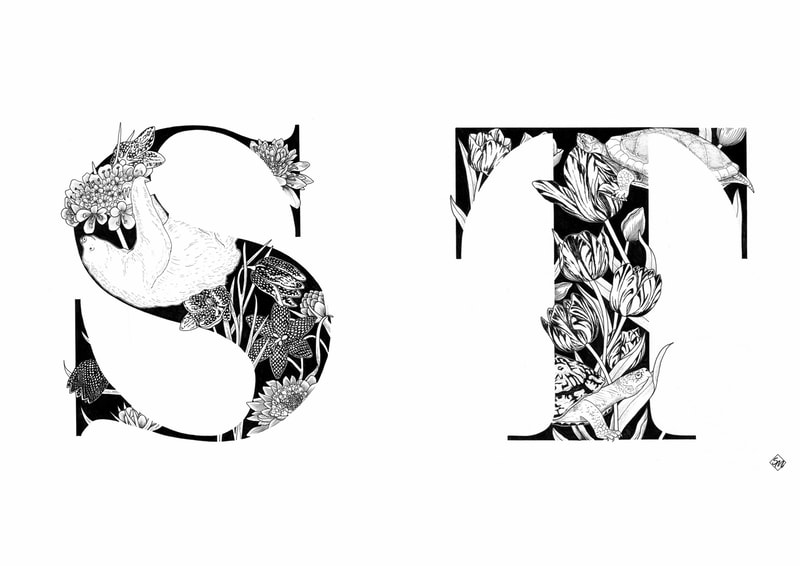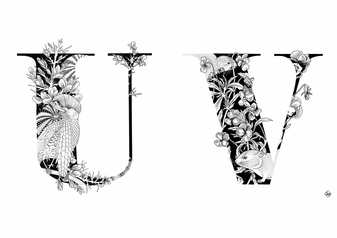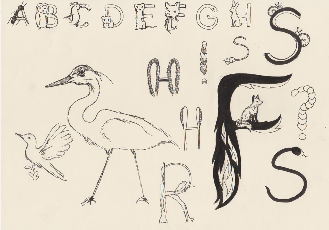 Animals are my favourite thing to illustrate, so of course I had to include them. However I found that getting animals to become the shape of the letter is very difficult.