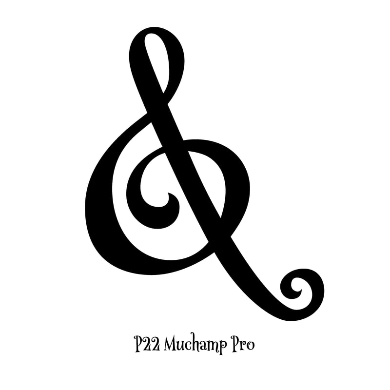 I like the appearance of this ampersand because of the way that the curl of the lower half of the E points out of the ampersand perpendicular to the top line. This creates an interesting appearance where the ampersand looks like it is pointing right. P22 Muchamp Pro