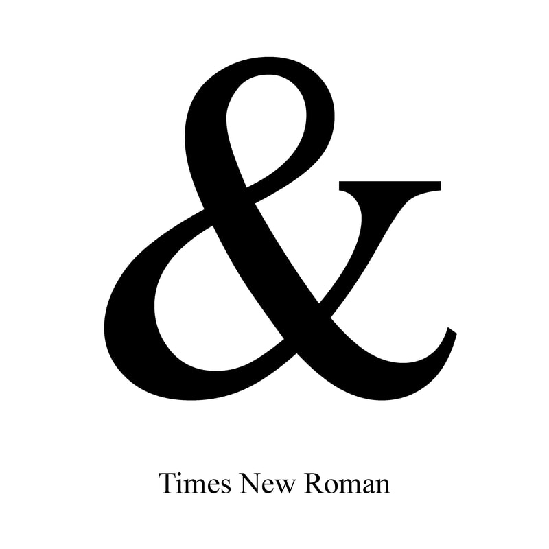 I feel like this ampersand has its own character, it is fun and bold. It evokes feelings of confidence. I was also drawn to this ampersand because the bar reminded me of a moustache which made me smile. Times New Roman
