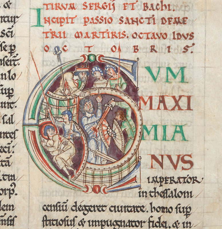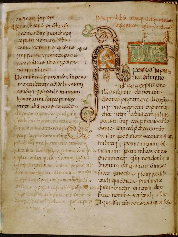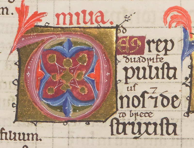 An illuminated letter was usually the first letter of a page. These were large and colourful, with areas in gold, while the rest of the text was black.