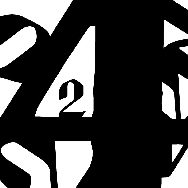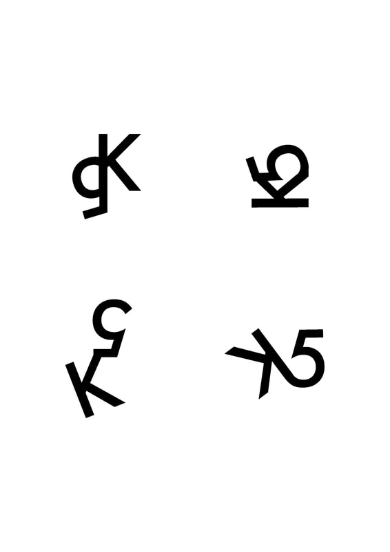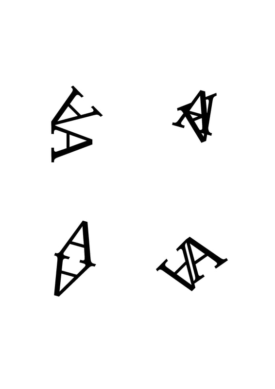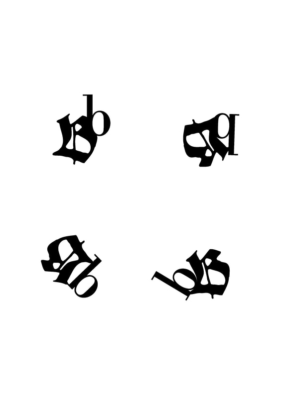 Pick two letters or numbers or a mix. Create nine 7cm-7cm compositions where you can combine the two characters in a dynamic way within the square.