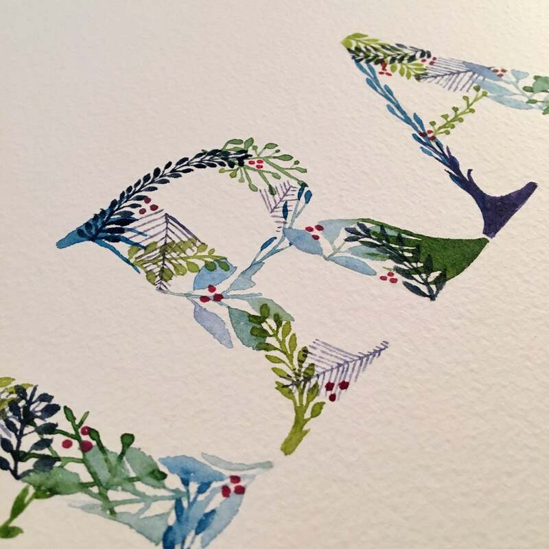 I started my medium research with looking into watercolour letters, I think these letters are very pretty. Additionally I think this style would work well for developing my different ideas into functional letterforms. |