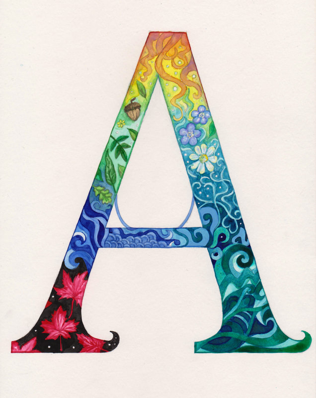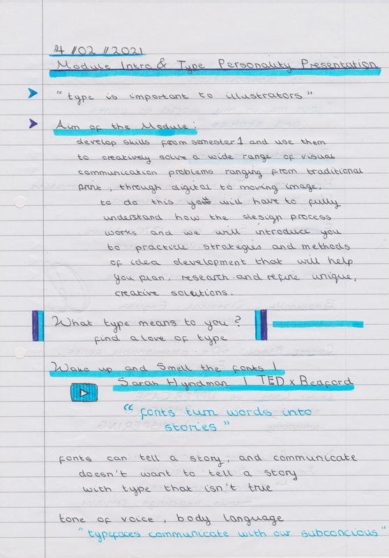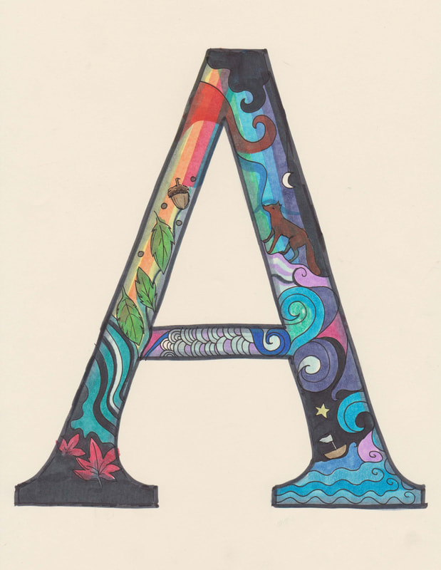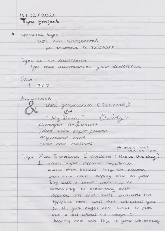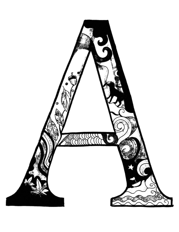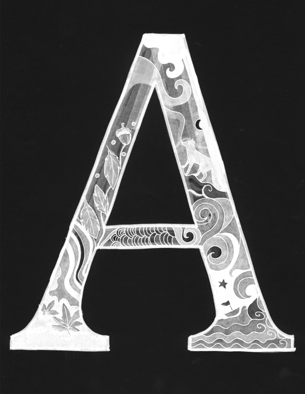After completing the quick "Typeface Selfie" that was created within the online workshop, I decided to give this mini brief another go. But this time I allowed myself more time so I could create a letter that represented me accurately. I am really happy with how this turned out, I didn't plan the colours that I painted this letter with at all, so that they could be completely determined by my subconscious. I think that this made the letter a more accurate reflection of my personality. Within the letter I included the pattern of the dress I was wearing during the first session (the red and black maple leaf pattern), a lot of leaves (to show my love of nature), the sea (to represent my love of water, and my star sign Aquarius), forget-me-nots (one of my favourite flowers) and swirls of orange ( to represent my ginger curly hair). |