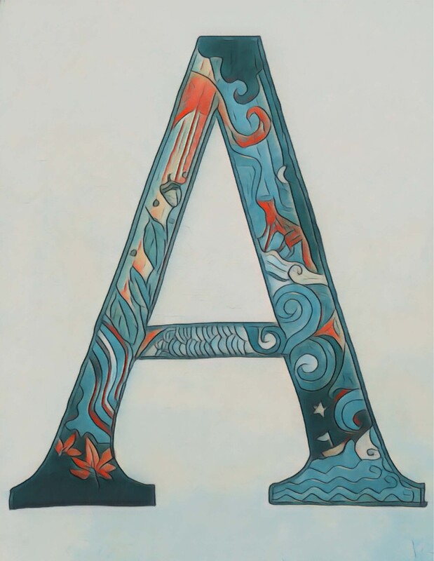 If I were to take this idea further I would probably have normally shaped letters with a scene including the animal painted inside the letters.