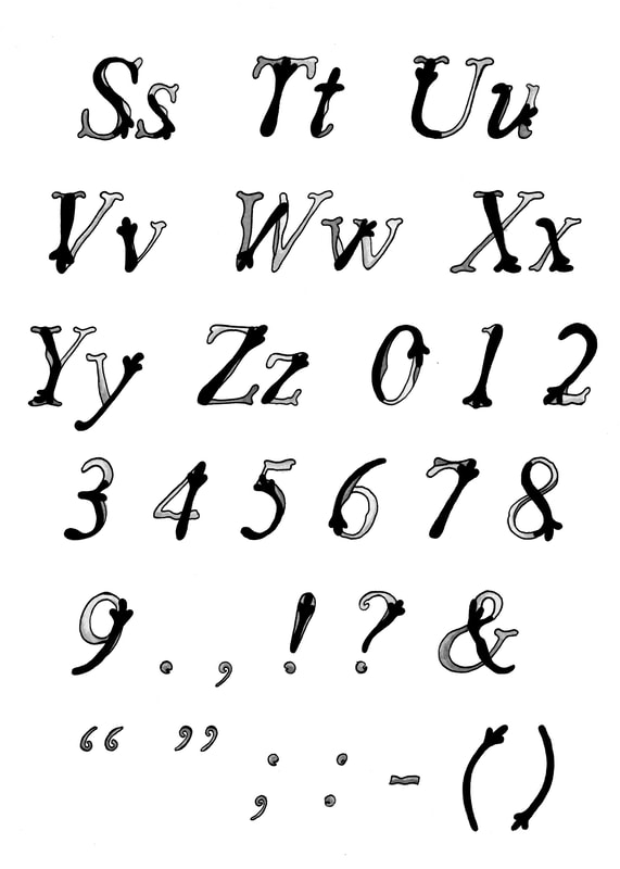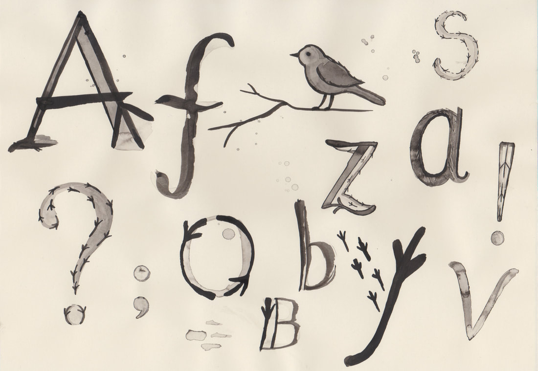I love the style of ink letters, I think this material would probably work best for a functional alphabet. This is a material that I definitely want to explore during my development process.
