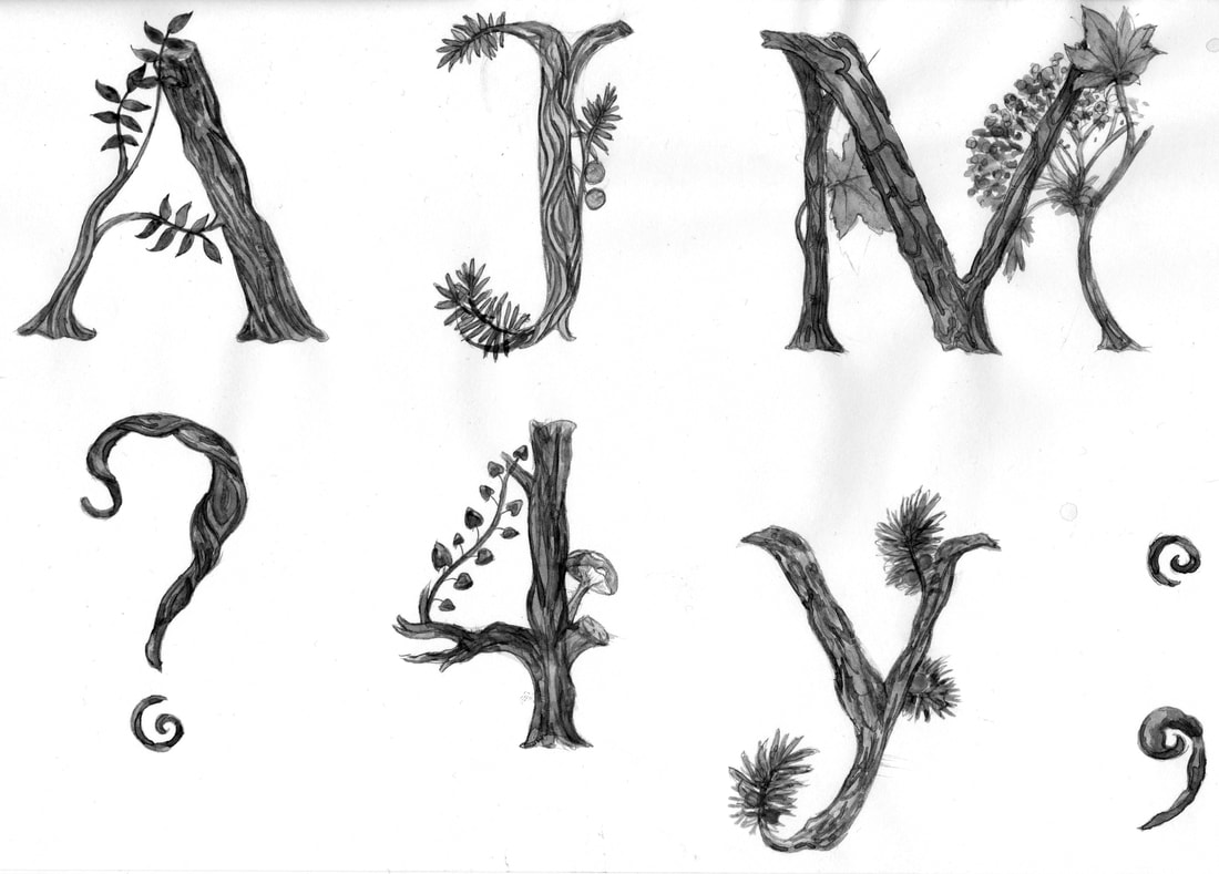 The movement within the branches and bark of a tree would allow me to play around with the shapes of my letters to make them more organic.