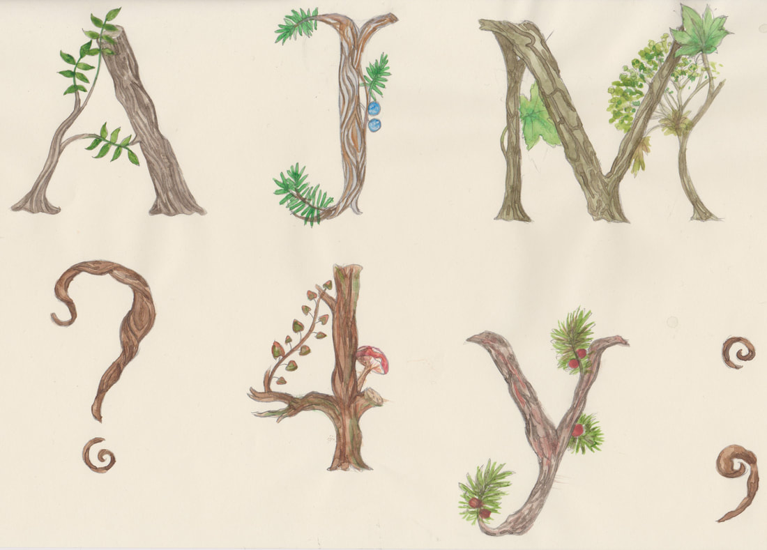 I think there is a lot of scope in this idea, I like the idea of each of the letters reflecting the bark and leaves of a tree that starts with the same letter.