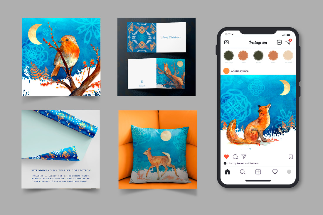 The purpose of this project was to create a collection of illustrated work that could be sold as part of a cottage industry. I initially planned to just make card based upon British wildlife, however I found theming my set around Christmas allowed my cards to have a context, and this also meant that I could play with pattern for wrapping paper which is something I really enjoy. Overall I enjoyed creating self directed work and I am inspired to set up an Etsy in the near future.