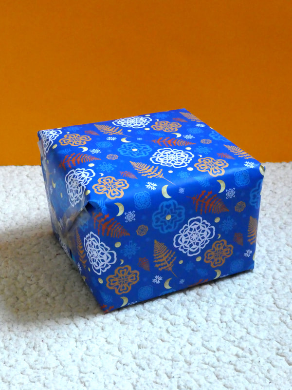 The cards and wrapped presents created physically, while the cushion and wrapping paper roll is a Photoshop mock-up (links in the main project)