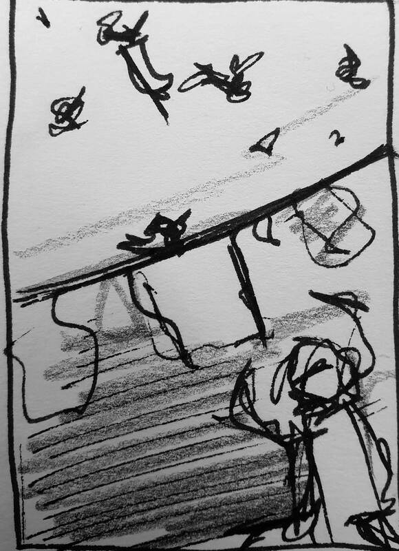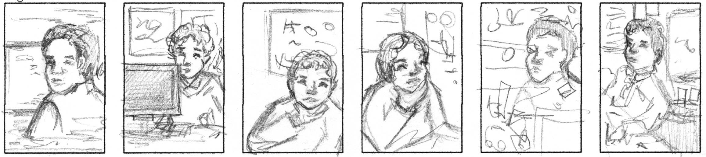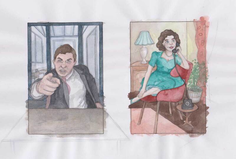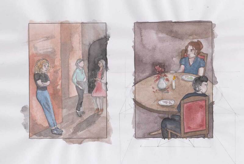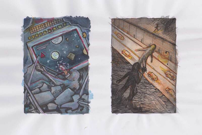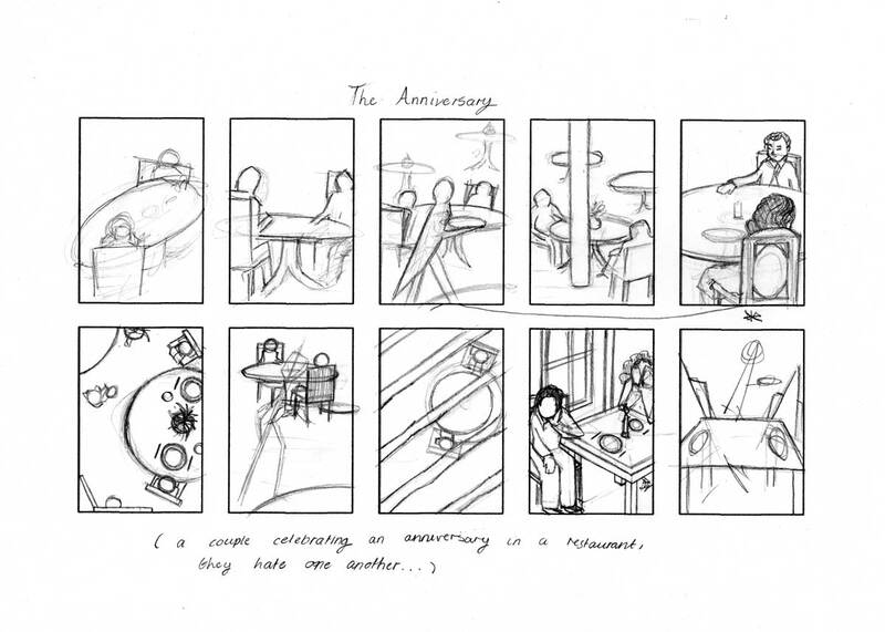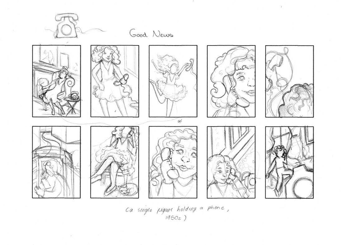 I created a collection of thumbnails for each of the action topics to get a feel of how each movement could look, I found the extra stage directions the hardest to follow. However I am very happy overall with how these thumbnails turned out, I attempted to use multiple different types of materials to create these thumbnails dependant on what I thought matched the action best. Using watercolour for the tango theme really brought the thumbnails to life.