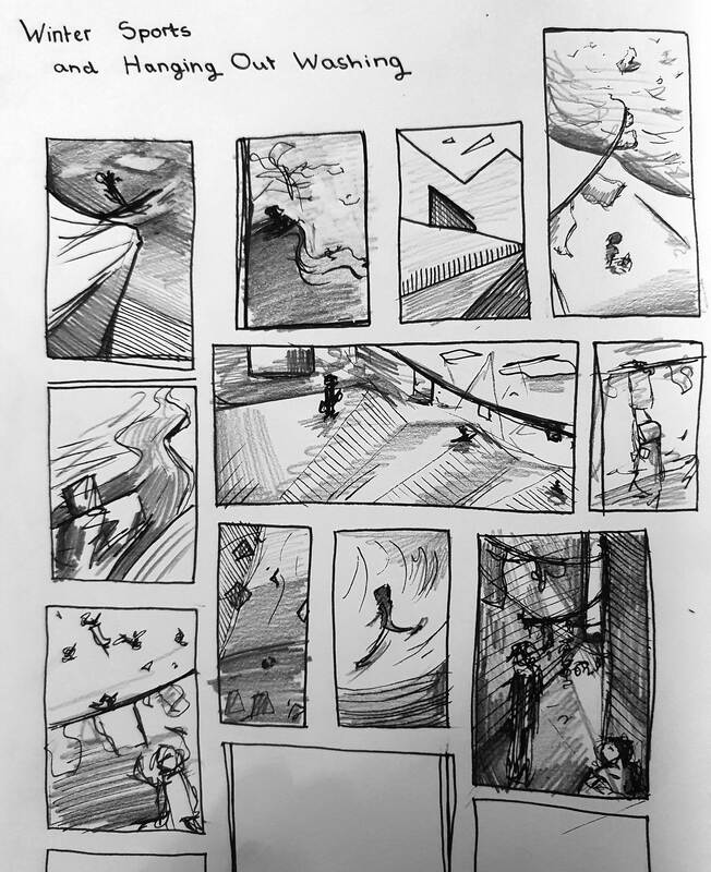 After the project briefing for the "Action" project we were asked to quickly create a collection of thumbnails based on the concepts of "Winter Sports" and "Hanging Up The Washing". I am pleased with how they turned out and it was a good opportunity to loosen up and just experiment with angles and dynamic composition. I still have a long way to go but I am looking forward to creating a collection of quick visuals for this project that will hopefully help me to think outside the box.