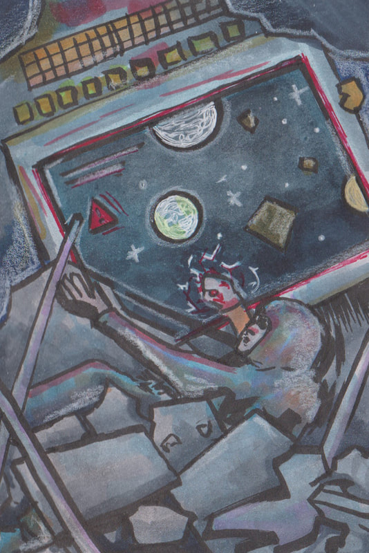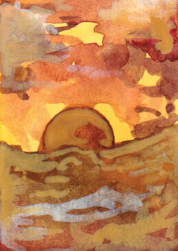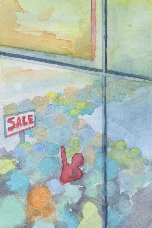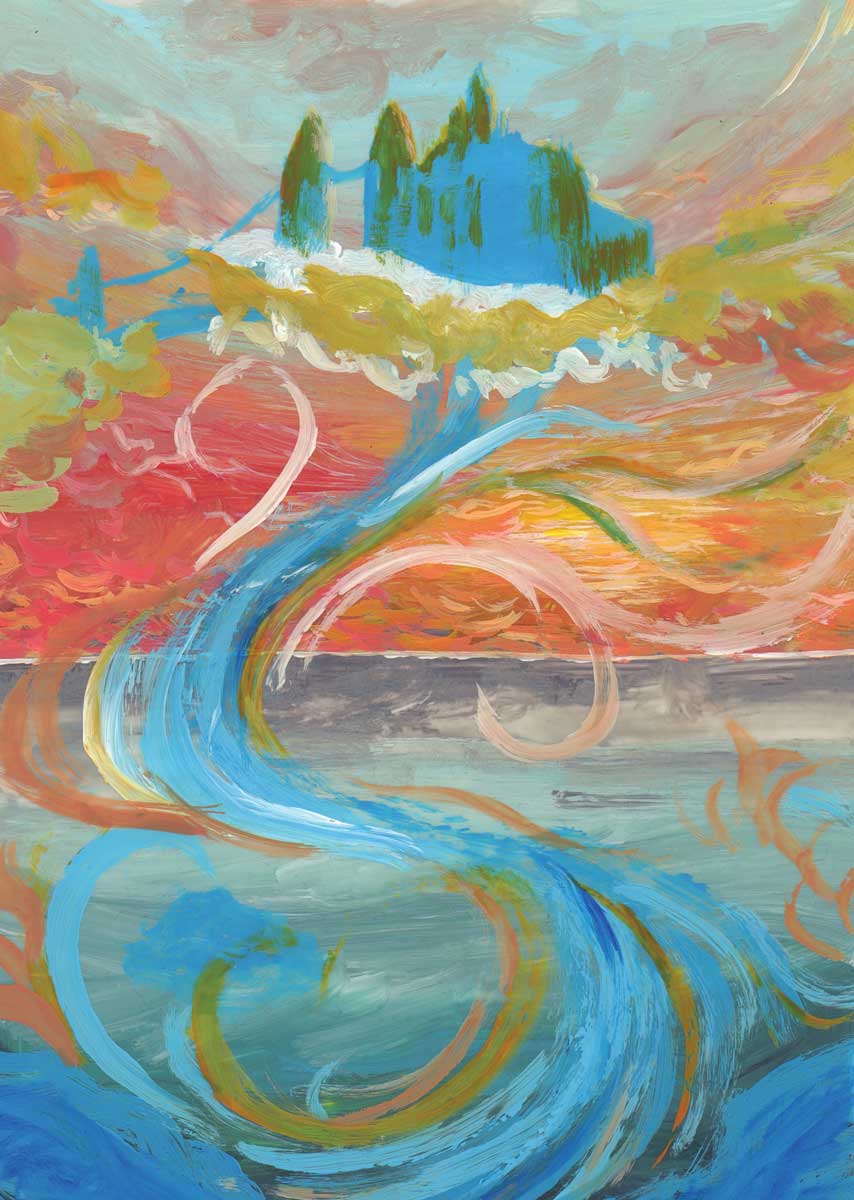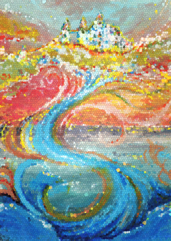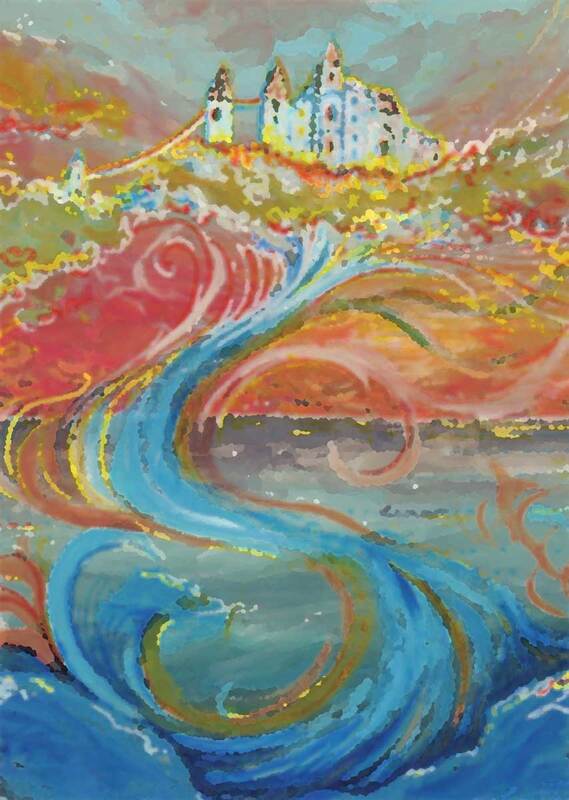 Watercolour Final Piece Before my feedback with Dwayne where it was suggested that I use some acrylics. I had already started to create a watercolour final piece inspired by my impression of the text, I really like how the colours look and I think it has a whimsical dream like quality which I think reflects the nature of Thomas Traherne's text. I would usually work into a watercolour painting much more than I did for this piece however due to time restrains and the fact I didn't want it to look overdone and literal I stopped painting sooner than I would usually. I think the fact I left this piece quite gestural helps to make the piece seem immaterial and otherworldly, which I think helps to tie it to the original text. |