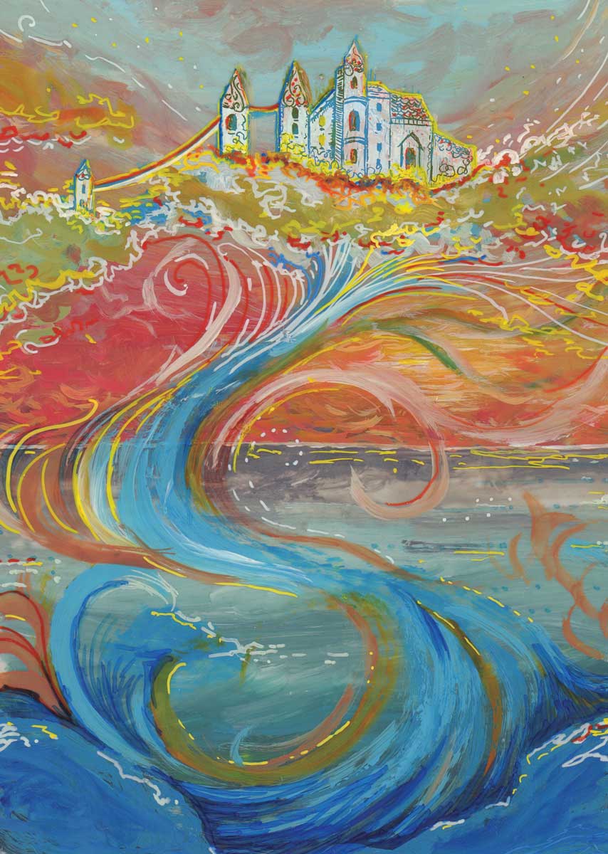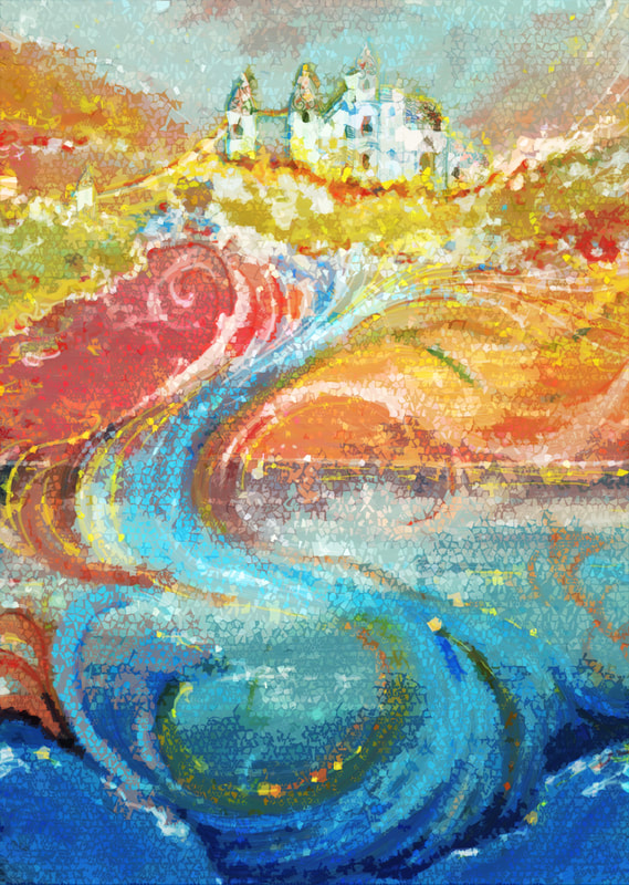 Communicative Colour Final Illustration This is my final piece for the Communicative Colour project, I love how the colours turned out after I added in all the layers, I think the highlights of yellow across the whole illustration helps to tie the whole illustration together. I also added in the white highlights to make the castle and clouds pop out more, I think that it all works well together. However if I was to change anything I would have given a larger space above the castle in the sky to balance the image better in the page. The way that the dark blue works coming up from the bottom of the illustration helps to lead the eye upwards and loops your eye around the illustration and I hope it helps to convey a beautiful magical world full of wonder and joy. |