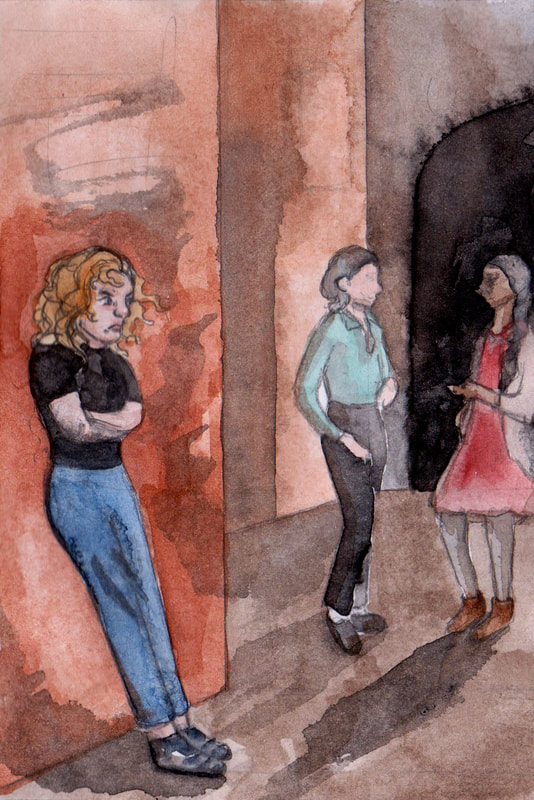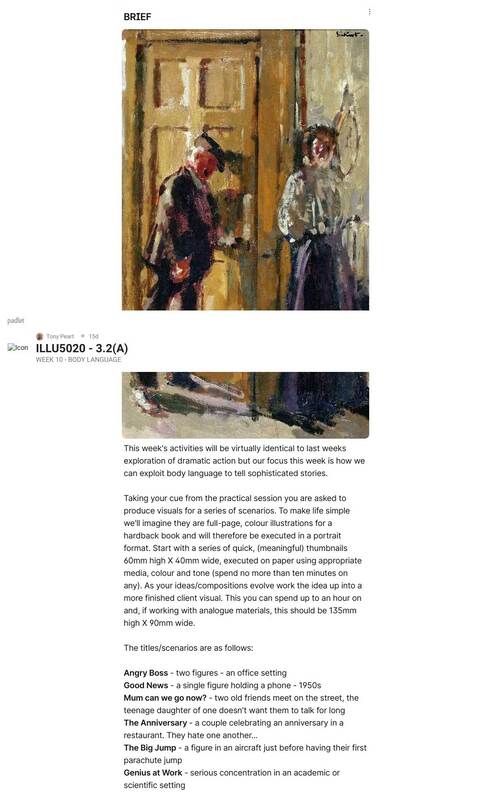 I found the body language section of this project even more difficult that action I think, I didn't manage to capture the body language as dramatically as I hoped. Most of the illustrations I created look a be stiff. This could be from my lack of observation of how the human body actually moves. I much prefer drawing and painting animals but I think I need to work of action and body language some more in the future to try and improve my understanding and ability to communicate through my illustrations.