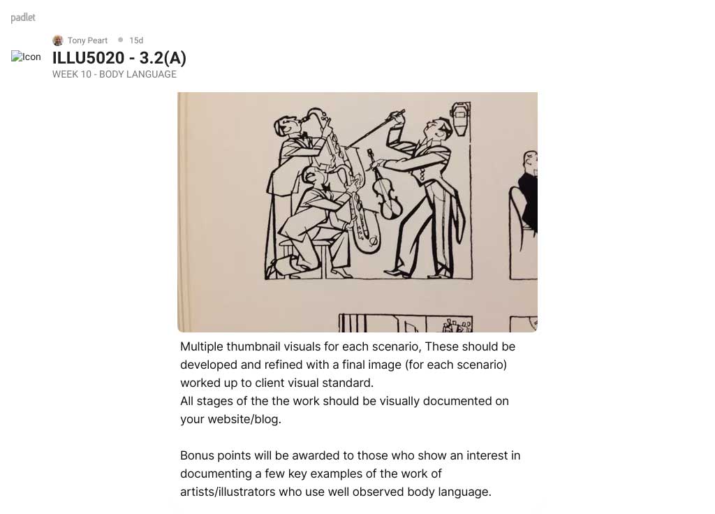 After talking to Dwayne for feedback he said that these designs could have been improved by adding more clear and accurate body language into them, so after I finished uploading my original visuals to the blog I went back and created an extra page of visuals for both "action" and "body language" using fine liners to speed up the process.