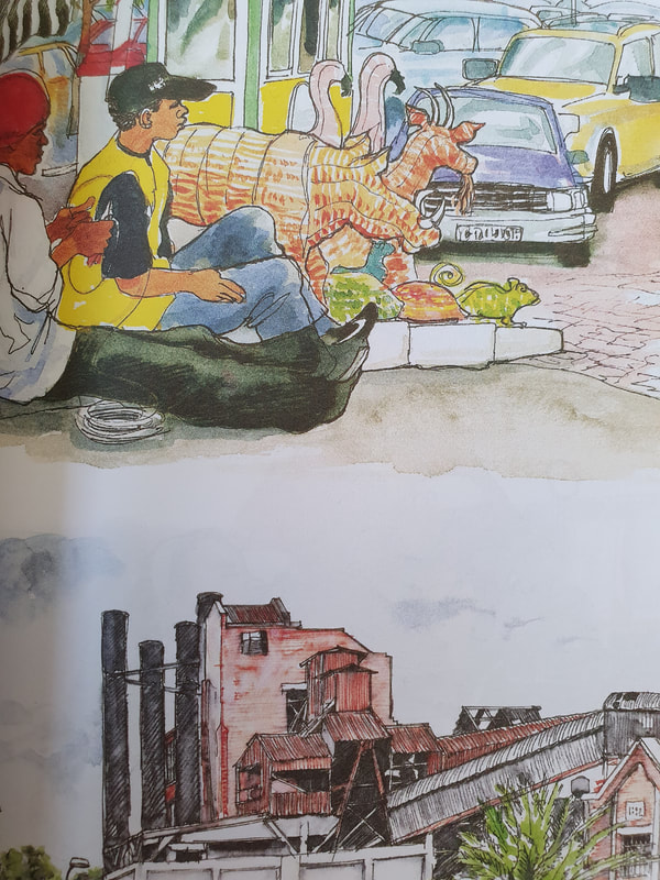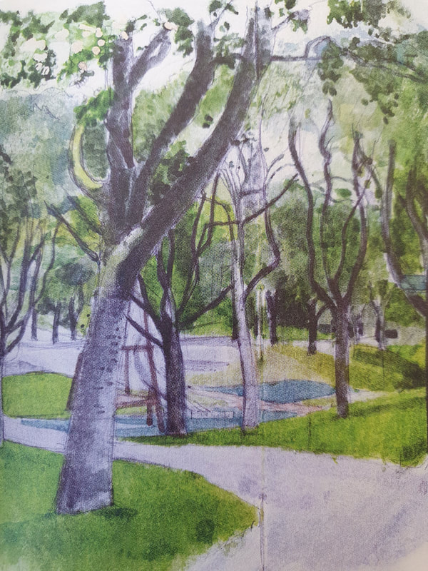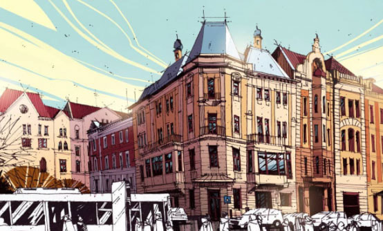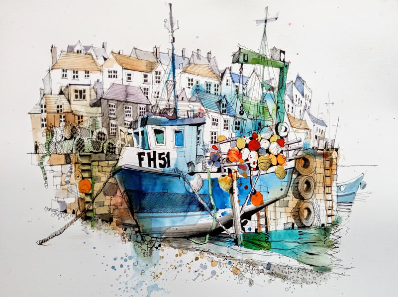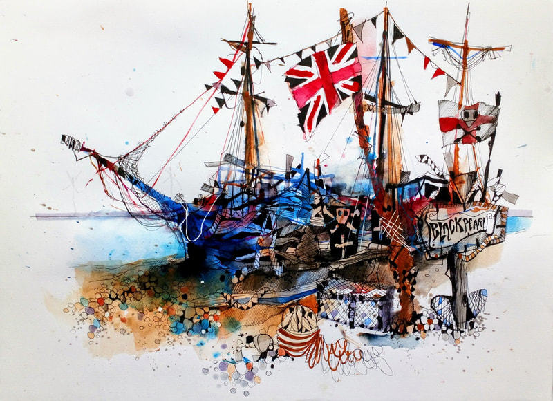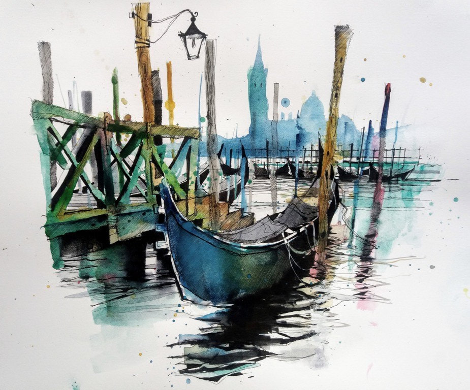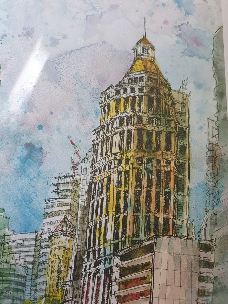 I came across Ian Fennelly when I researched Urban Sketching online, he offers classes and seems to be quite popular and i can see why. His use of colours are utterly astounding and really help to give each of his sketches a personality. I have read on his "about me" page that he starts with a wash of colour then builds up, ending with a fine liner for details. Each sketch takes him around 2-3 hours. This bright and bold style is something I want to try out in my own sketching practice after I have had a chance to get used to fine liners first.