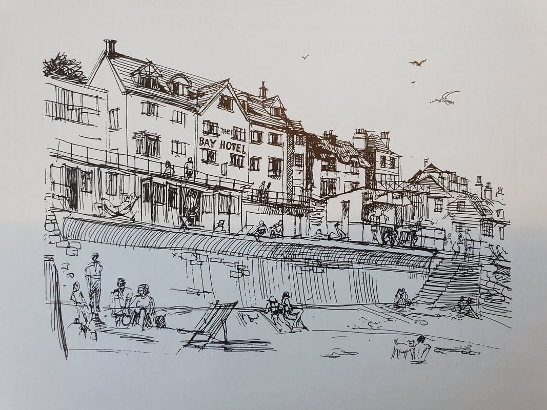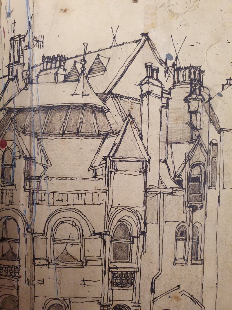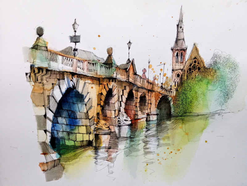 Reflecting on my own sketching practice at the end of the module. At the start of this project I reflected on my existing sketching practice, so I am now going to reflect at the end and see what has changed and what I am happy with and what still needs work. Overall I am really please with the progress I have made of this module in the way that I sketch, I am now not afraid of just picking up a a pen and starting to sketch, whereas before I would have always used a pencil first. Additionally I have discovered a way of sketching with watercolour that I really like and I have included two examples of this below, I think the black watercolour on white paper is very interesting and wouldn't have been something I would have tried before this project coupled with the painting project from this term. My confidence when sketching has improved greatly, however I would still like to spend more time on sketching buildings because I feel like my drawings of people have improved a lot more than buildings and I'd like to improve my sketches of buildings as it is currently my weaker point. |