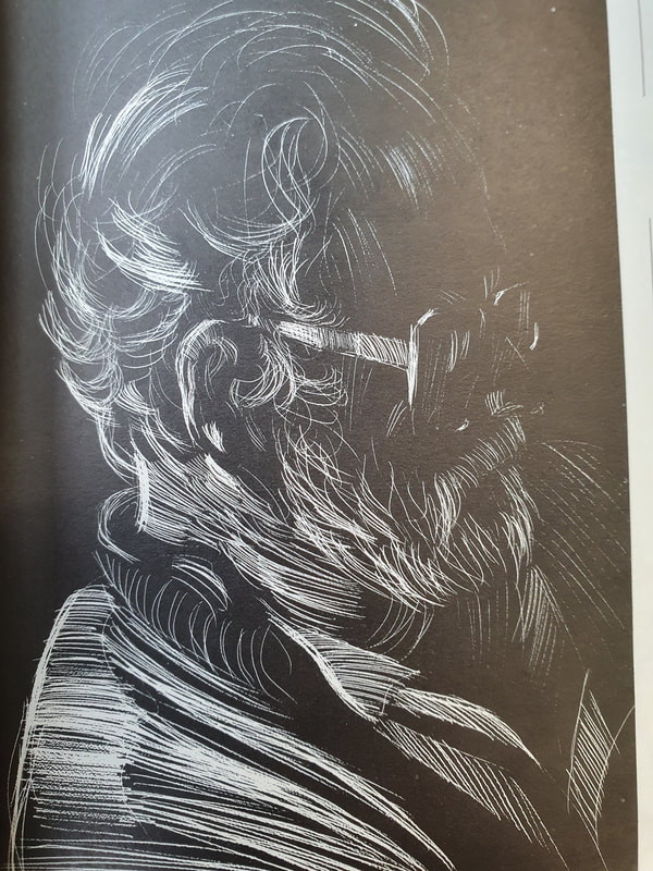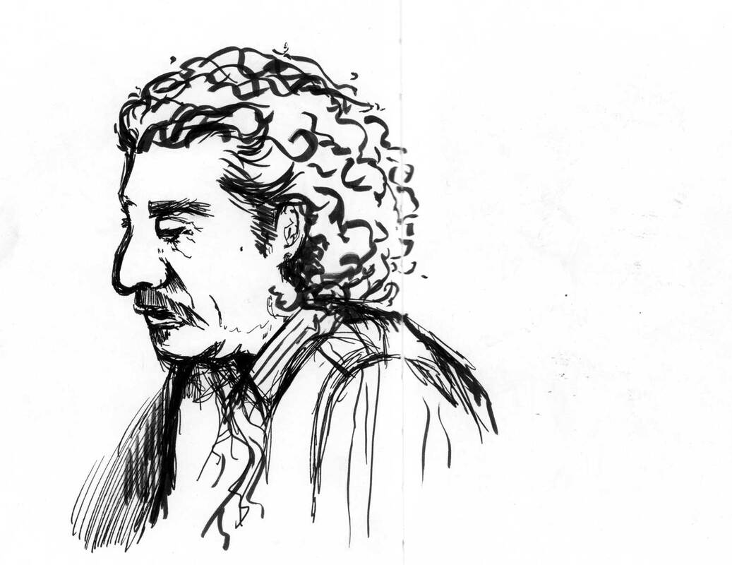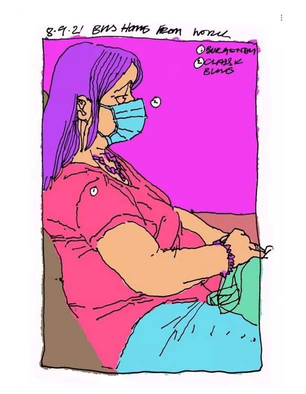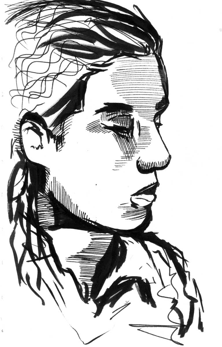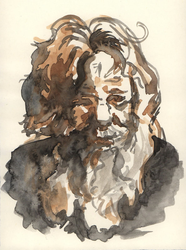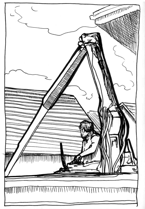 Dwayne uploaded these book pages onto blackboard and they were very interesting to read through, I especially like the sketch of Jim or "mostly grey" as he is also known. I like the way that Dwayne uses the watercolour paint to enhance his sketch but not overpower it. The way that Dwayne works is also interesting because he is working with the motion of the bus and not against it, the motion of the lines just add to the personality of the sketches. Which gives the images a slight feeling of movement even though the subject of the sketch is stationary.