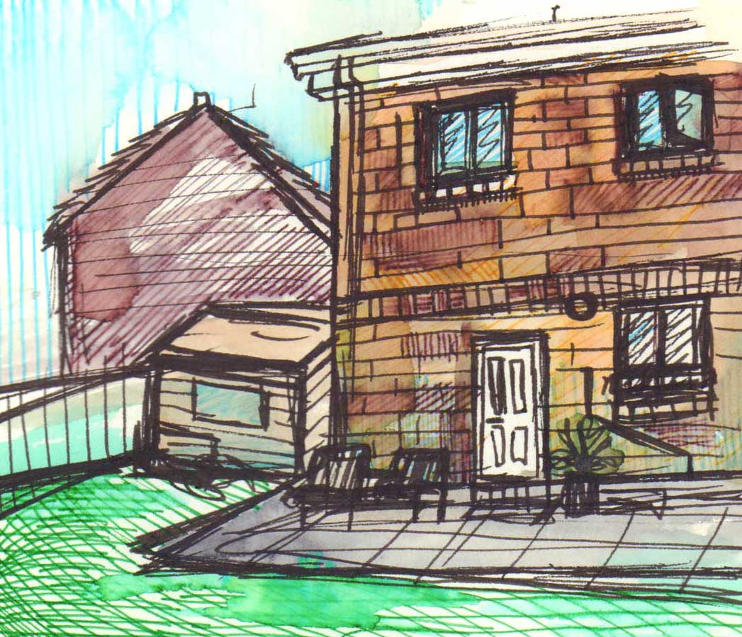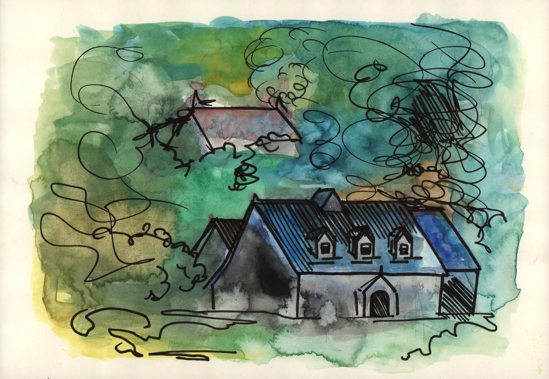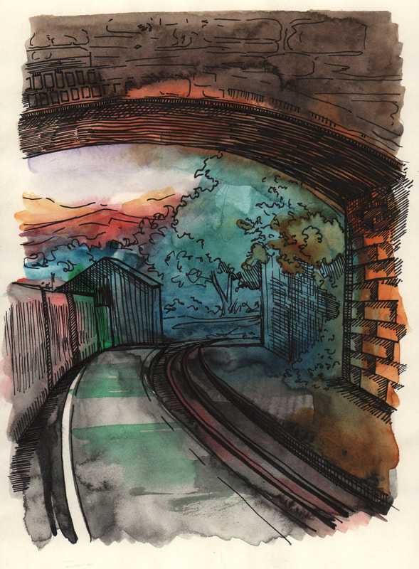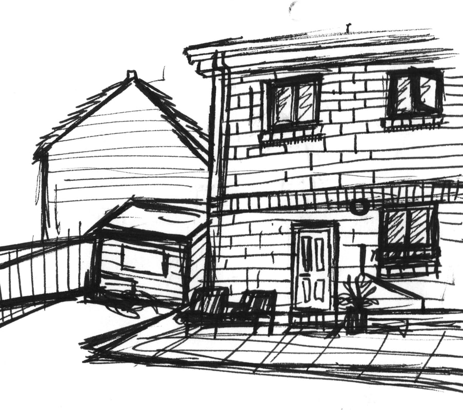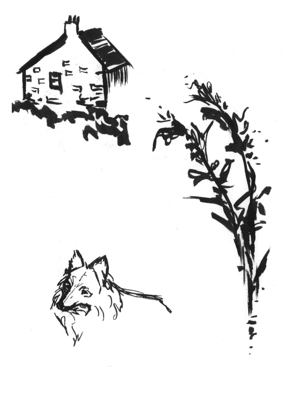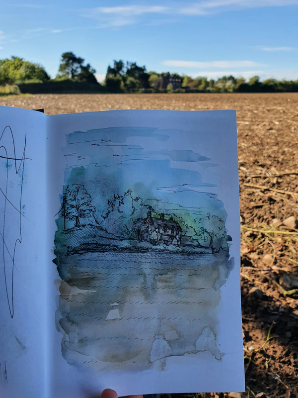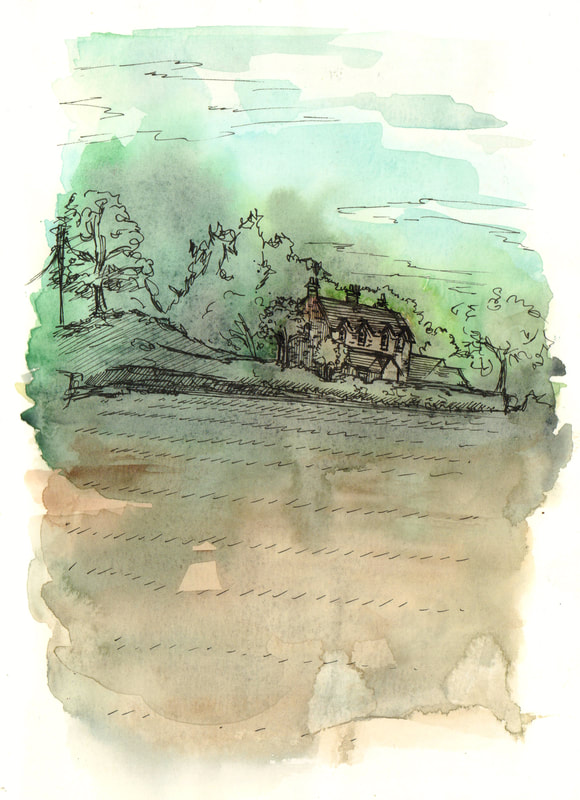 I was inspired by Ian Fennelly with the sketch that I created of a house across the field, I initially used a watercolour wash and then drew over the top of it. I actually found that creating a sketch this way helped me to make less "mistakes" and problems with the perspective. This is the style I liked most throughout this first week so I intend to do more sketches like this in the future. Additionally I liked the sketches of my backpack, train bridge and the sketch of my dog Fae sleeping. I think that the gestural lines worked well to convey her fur texture.