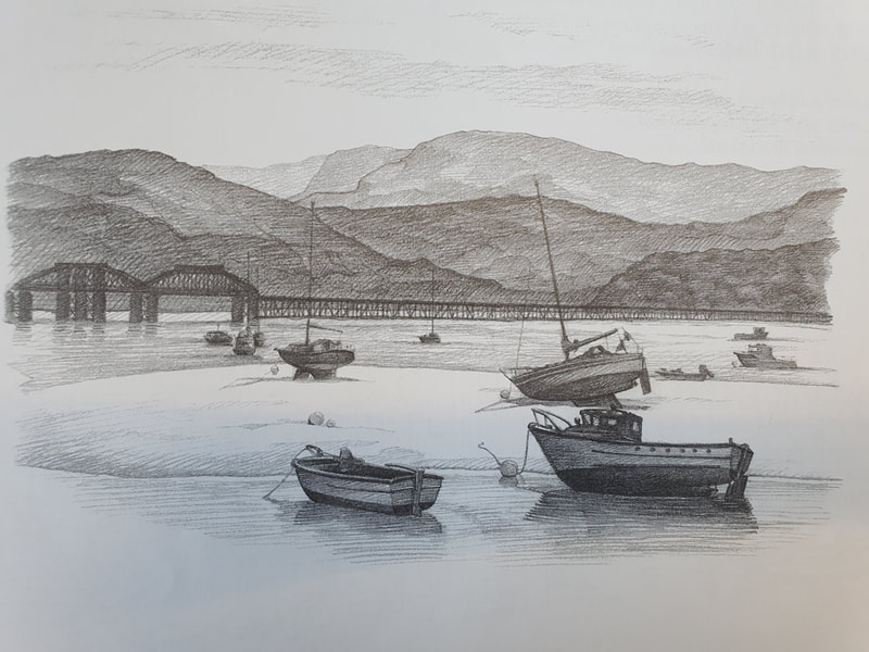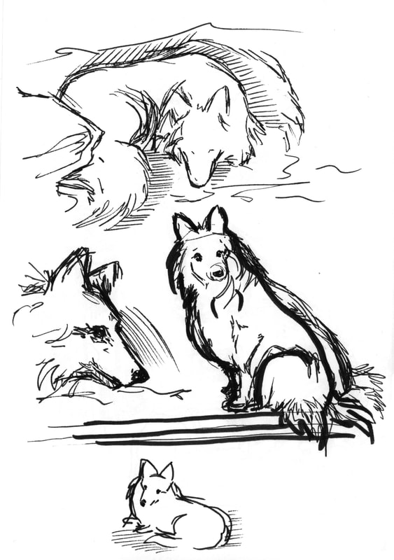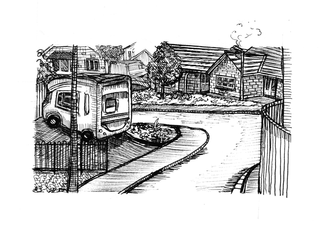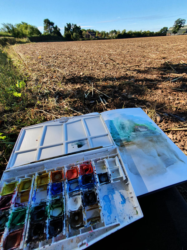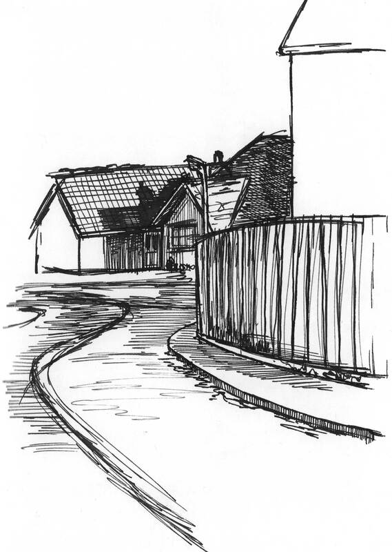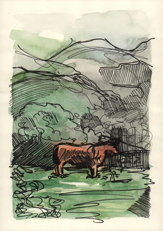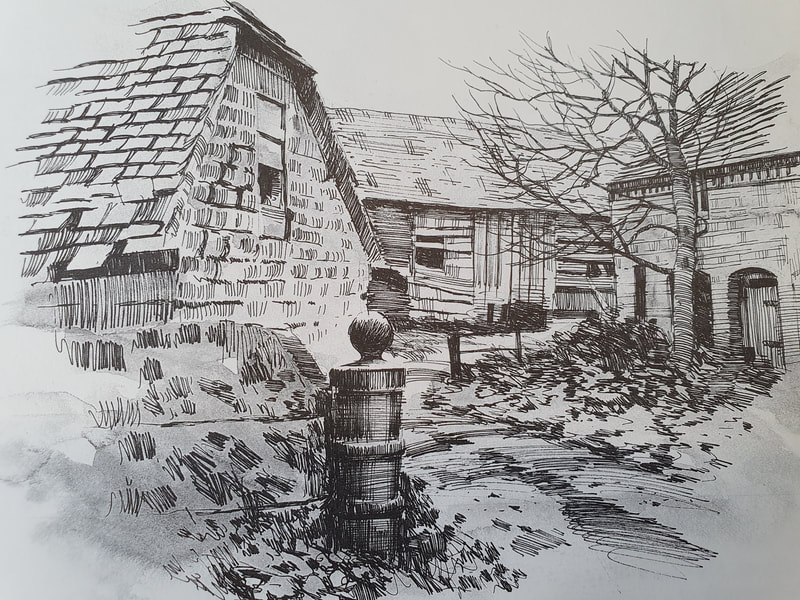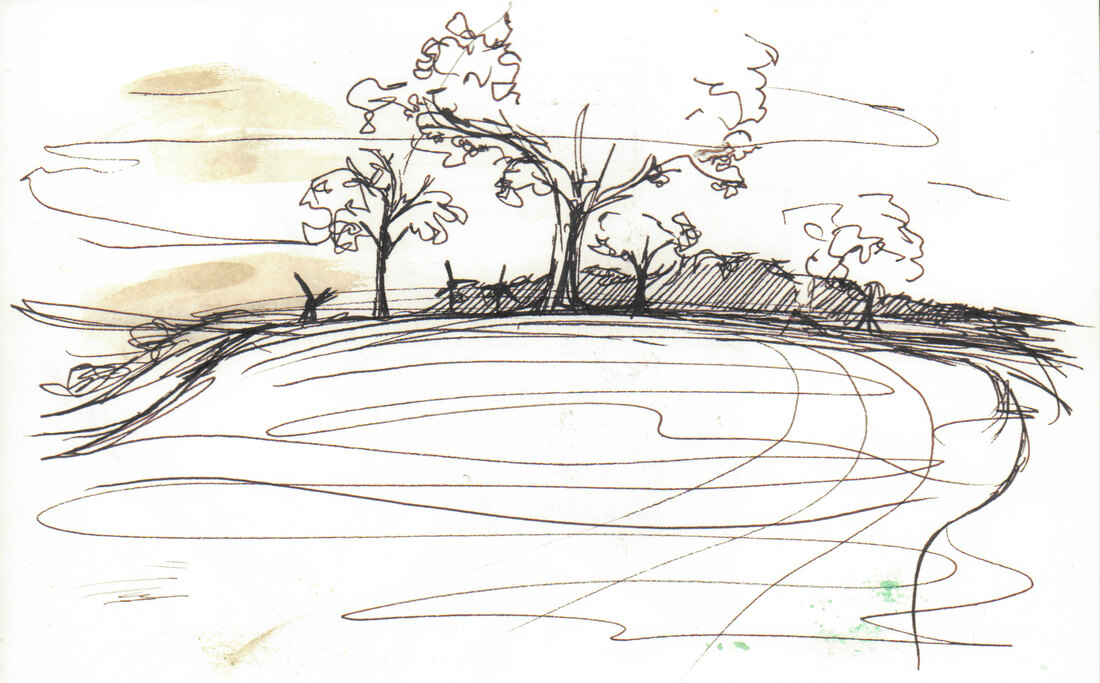 I was inspired by Ian Fennelly with the sketch that I created of a house across the field, I initially used a watercolour wash and then drew over the top of it. I actually found that creating a sketch this way helped me to make less "mistakes" and problems with the perspective. This is the style I liked most throughout this first week so I intend to do more sketches like this in the future. Additionally I liked the sketches of my backpack, train bridge and the sketch of my dog Fae sleeping. I think that the gestural lines worked well to convey her fur texture.