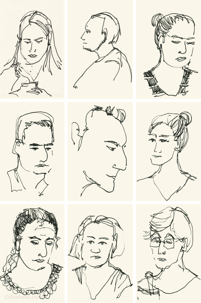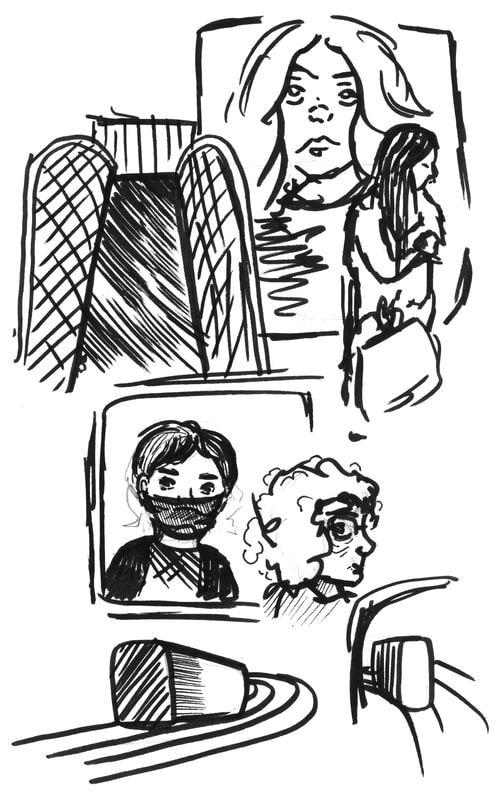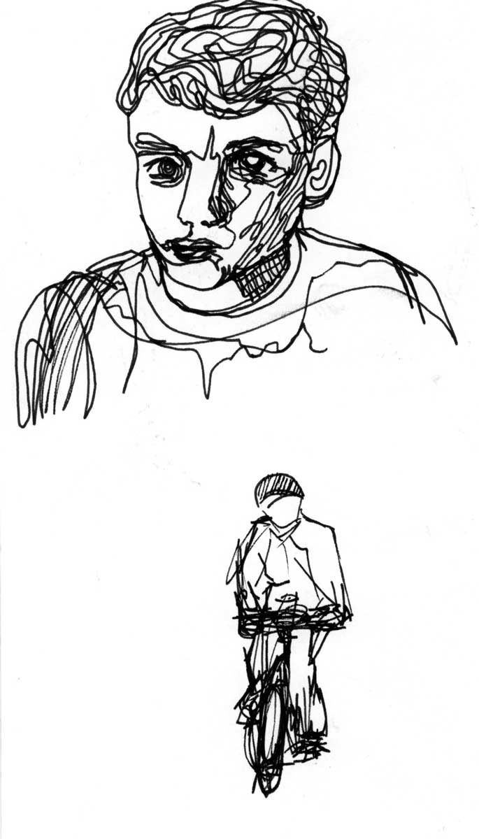 During this part of the project I attempted to sketch people in real life, this was difficult because people move, It really made me appreciate when people sit down or are older so they walk slower. My favourite sketch from this week was of a man on a digger that is working on the house across the road, luckily he didn't move too much and the thing that moved most is the arm of the digger. I ended up drawing a lot of people just from the shoulders up because a lot of them were drawn through the train window, however I think I should probably go back and do more full body sketches as well. Additionally I drew some cars, one of them was created with a continuous line which I think worked well even though this isn't directly part of this task it could inform my future sketches.