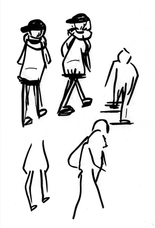I additionally looked into some artists that sketch people outside, additionally I looked at some YouTube videos that showed how different artists sketch people in urban sketching.