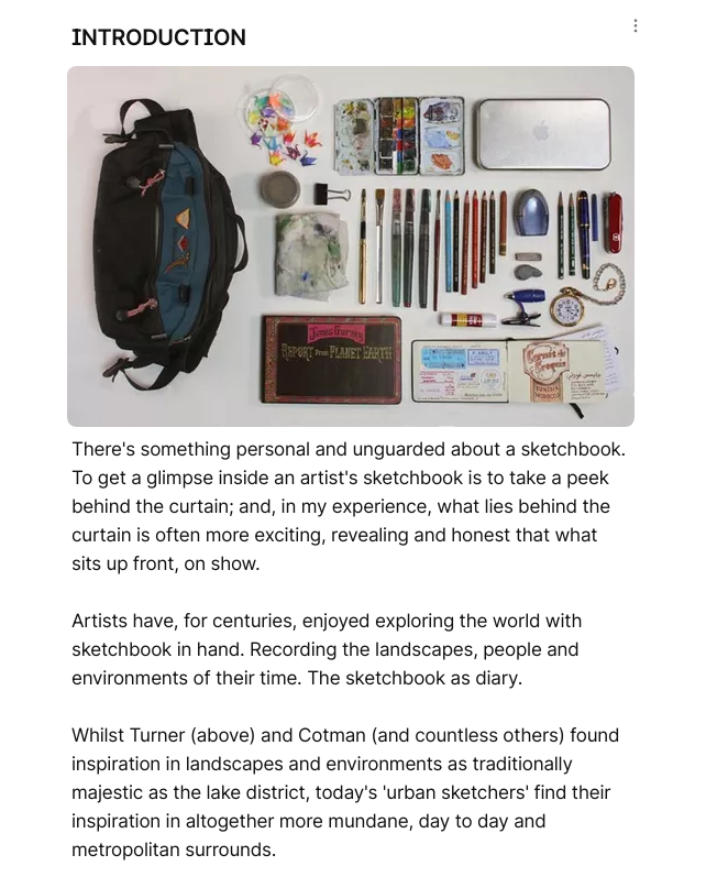 I researched a few different sketchbook videos on YouTube, I started by looking at some sketchbook tours then I looked at a few examples of artists sketching.