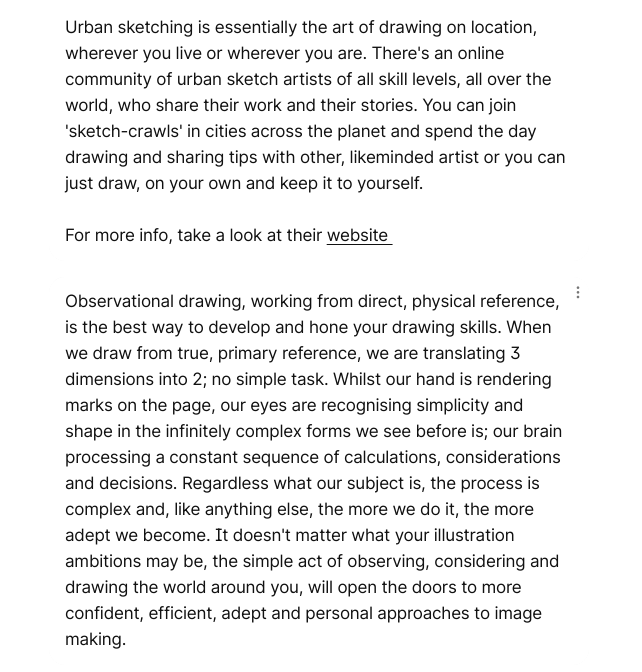 Reflection on my own sketching practice.