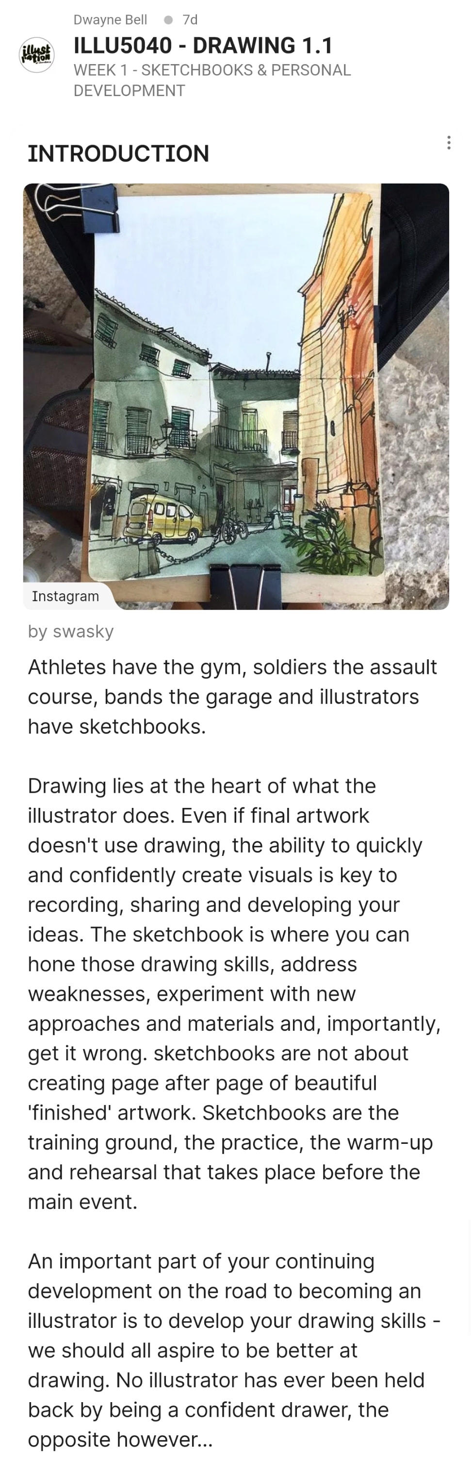 Week 2: Urban Sketching and Drawing on Location