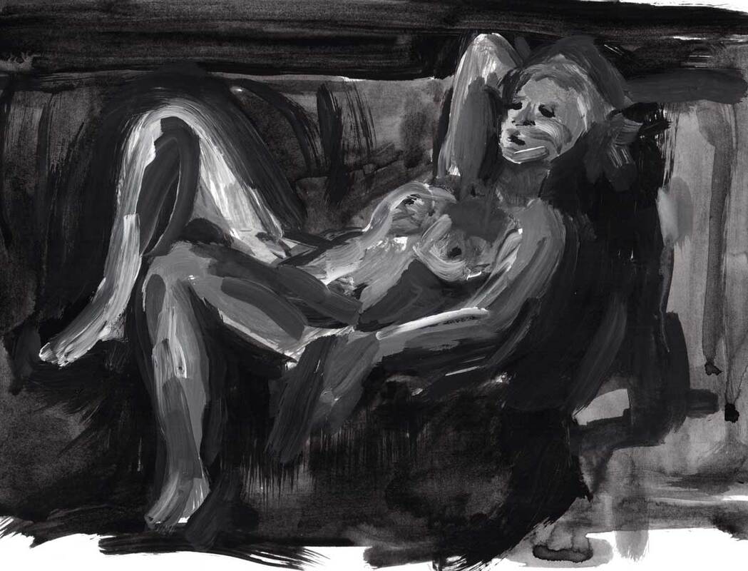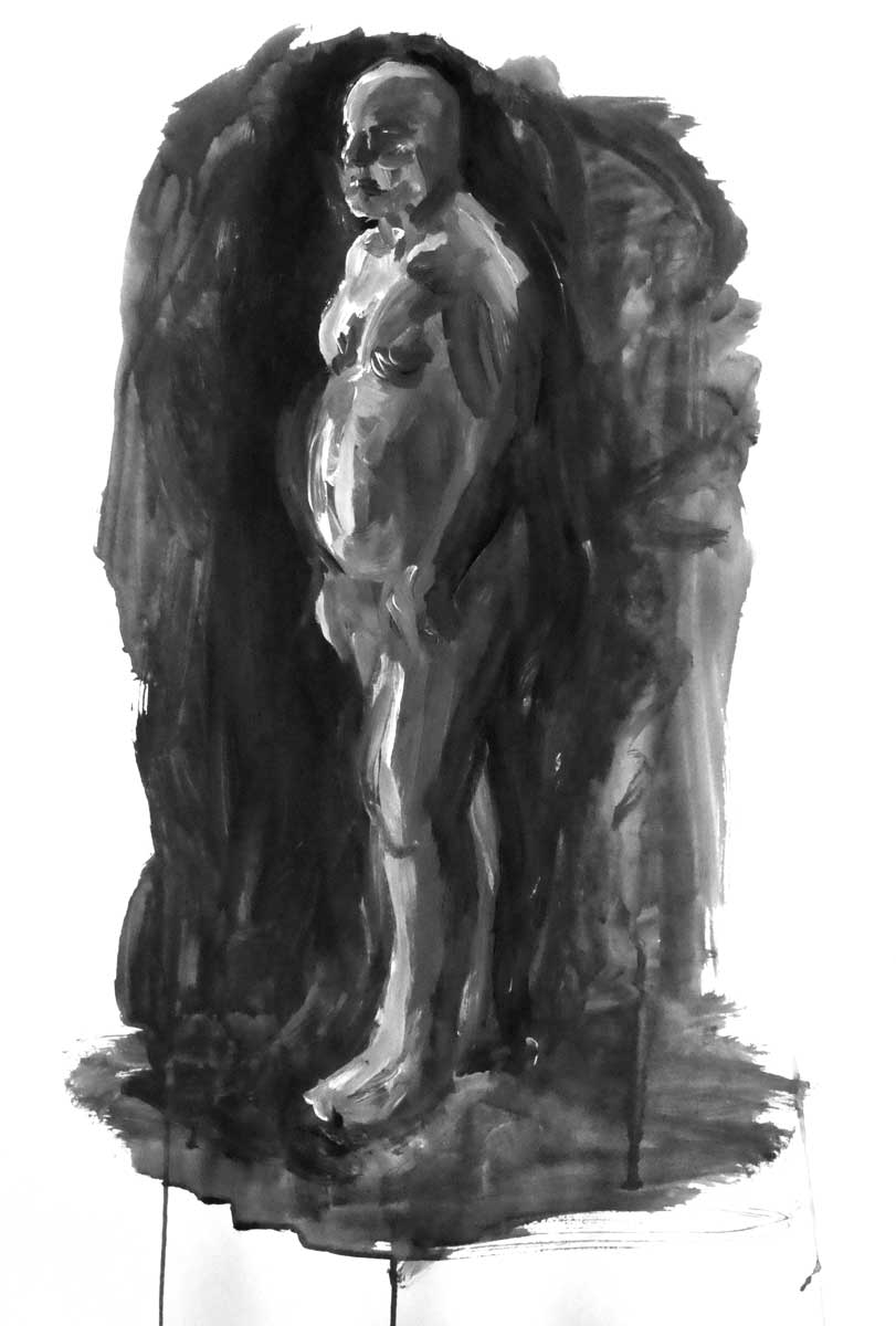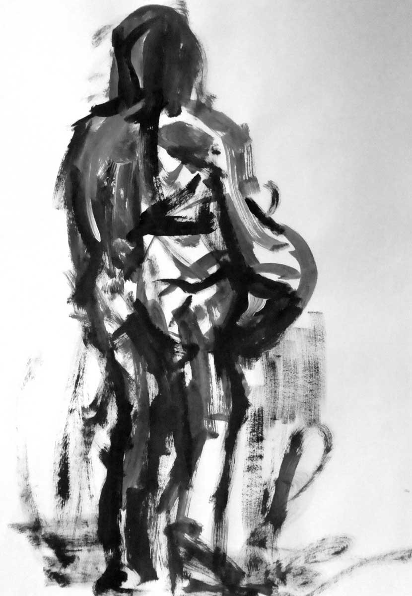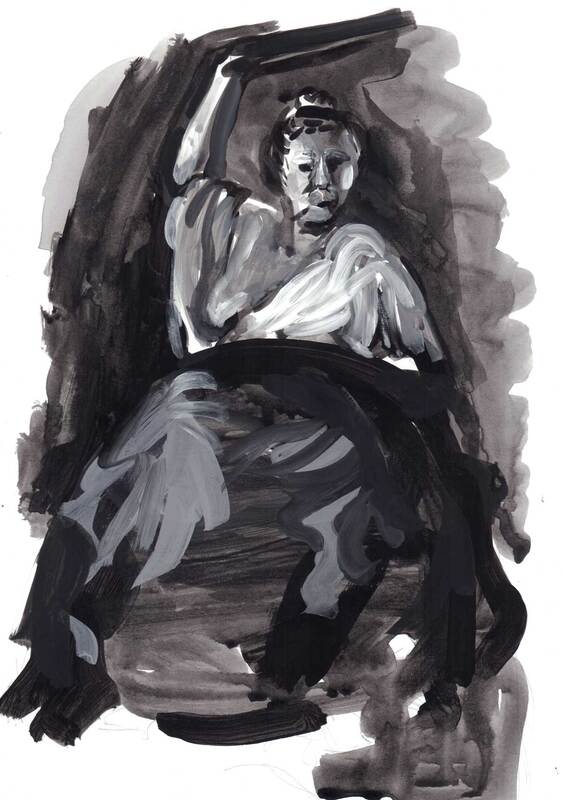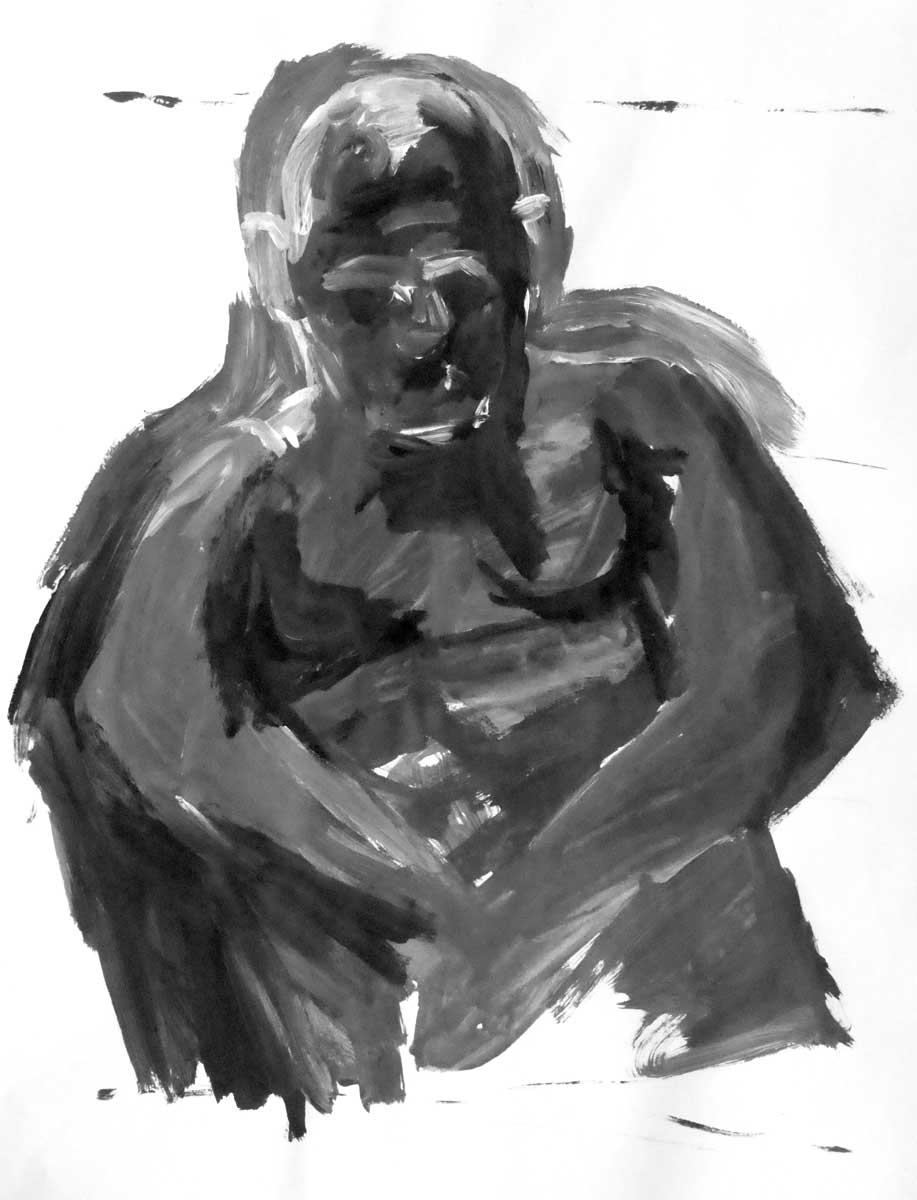 Unfortunately I couldn't go into university for the fourth week of life drawing due to illness, however I did find out that in the session that I missed we were asked to paint two drawings with acrylic on white paper and one painting on black paper. So I decided to create some independent life drawings based off pictures of life models as well as life drawing live on the BBC.