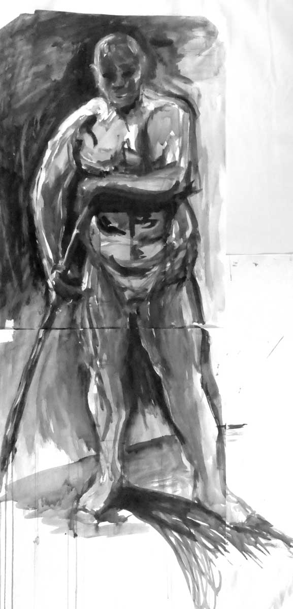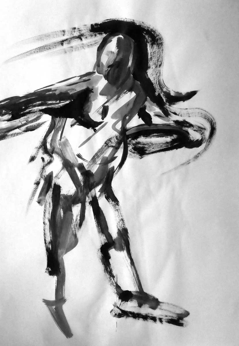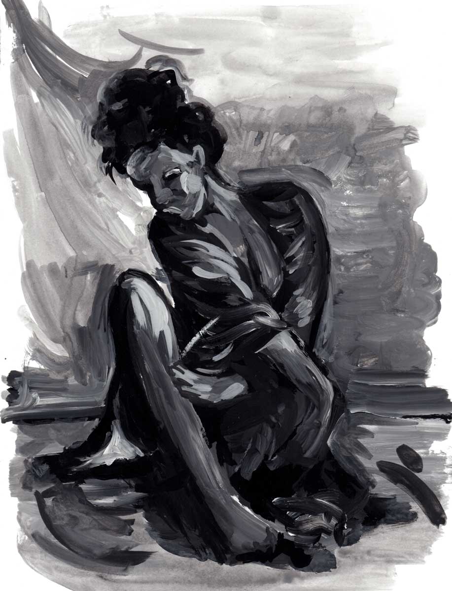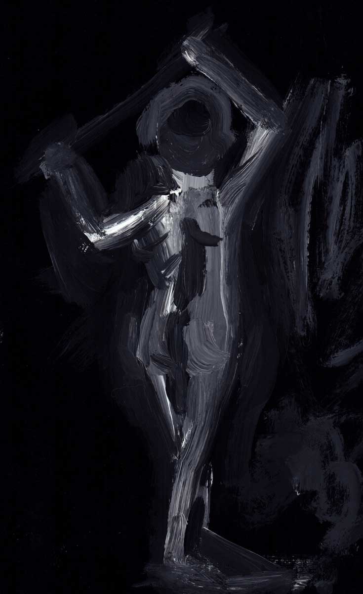 Unfortunately I couldn't go into university for the fourth week of life drawing due to illness, however I did find out that in the session that I missed we were asked to paint two drawings with acrylic on white paper and one painting on black paper. So I decided to create some independent life drawings based off pictures of life models as well as life drawing live on the BBC.
