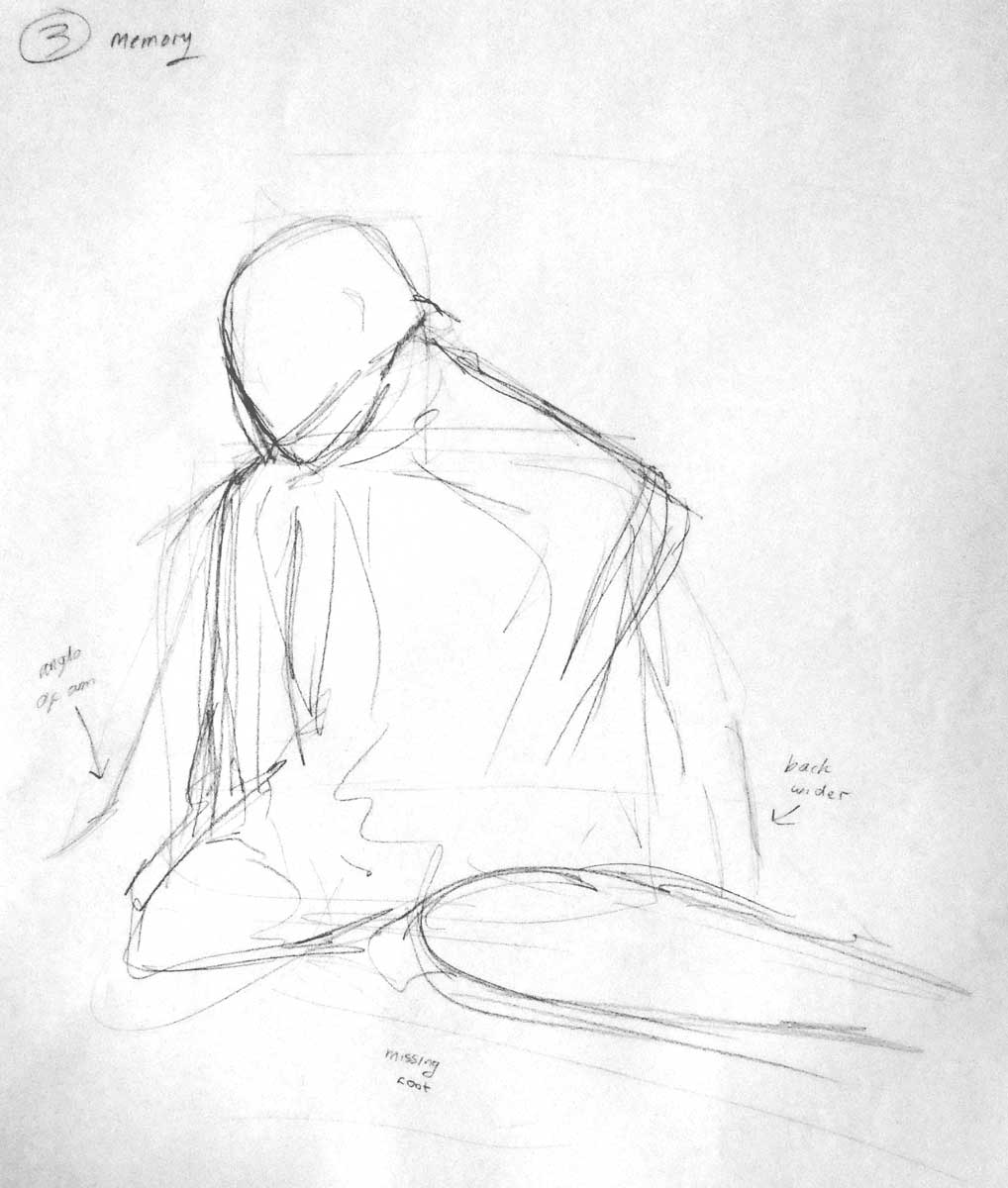 During week 1 we created a few pencil full body sketches, followed by a sketch from memory which was incredibly difficult.