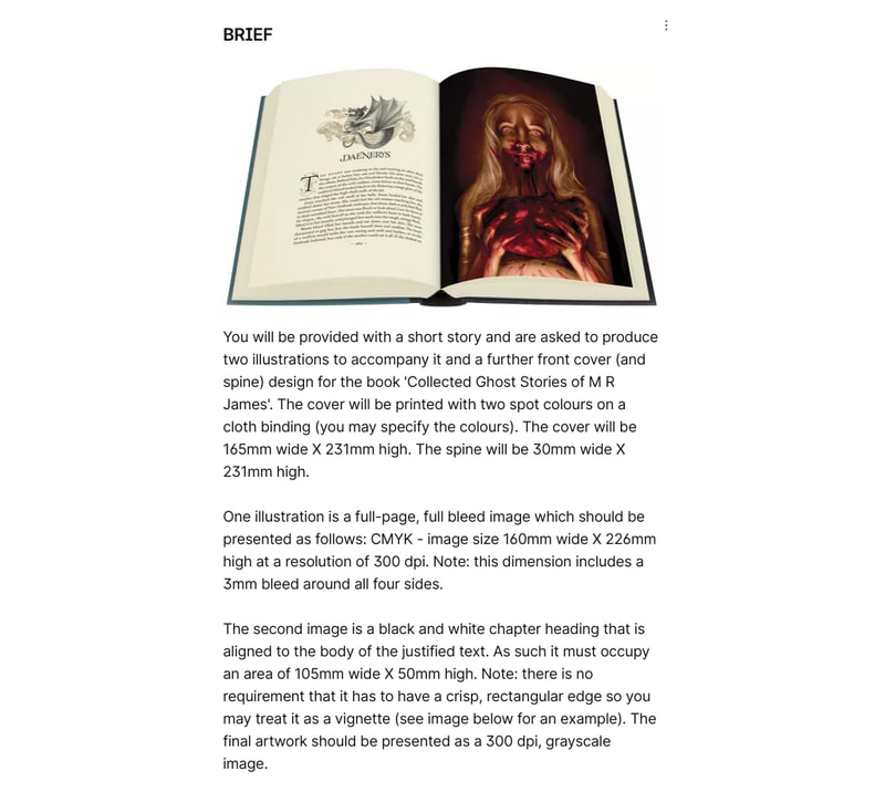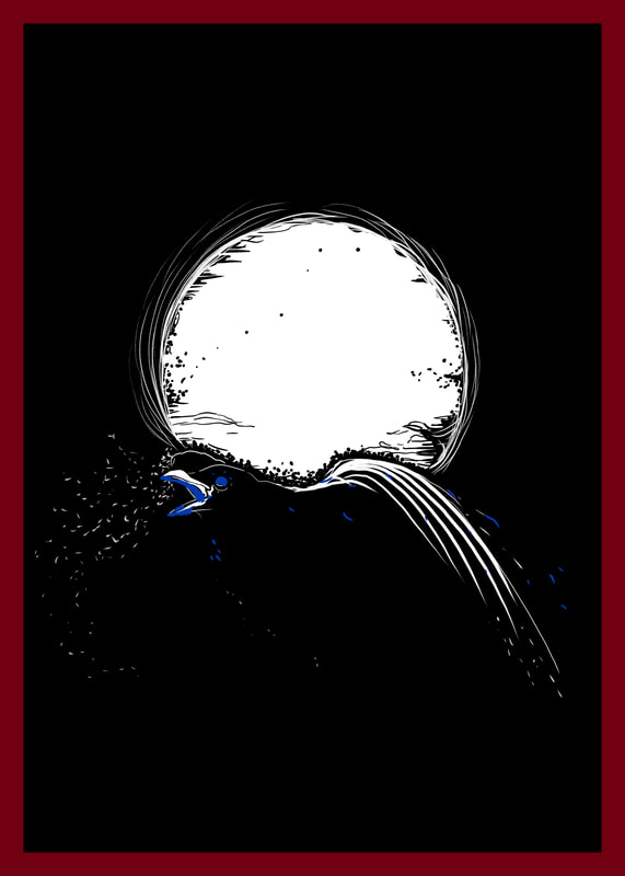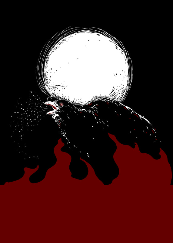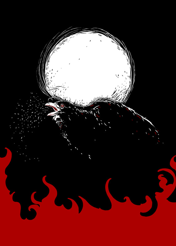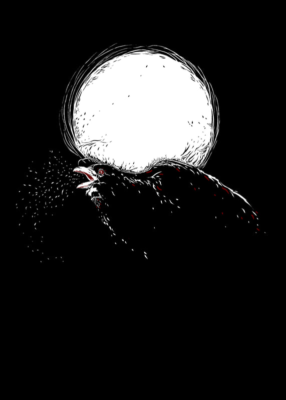 Final Book Cover and Spine For my book cover and spine design I picked to design it around a Raven, Ravens are commonly liked with death and ghosts in myths and superstitions. I also chose to create the cover using black as a background colour (fabric colour) using red and white to create the images and the writing. It was a struggle to create this but I am very pleased with how the cover turned out, I am definitely glad I took Tony's advice to make the image more simplified because I think it is a strong image that integrates with the text inside of fighting against it. I added the speckles coming out of the Raven's mouth, this was inspired by a video that I watched of a crow breathing in the frosty air. I also think that the speckles look like the raven is fragmenting and this reminds me of ghosts as they are ethereal and untaggable. Additionally I added the red round at the top of my front cover and I think that this gives the image the appearance of a doorway, I like that this helps to transport me into the illustration and want to read the book. The spine was also created to try and tie in with the front cover so I added a little raven and some speckles at the bottom. |