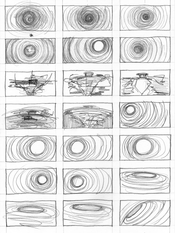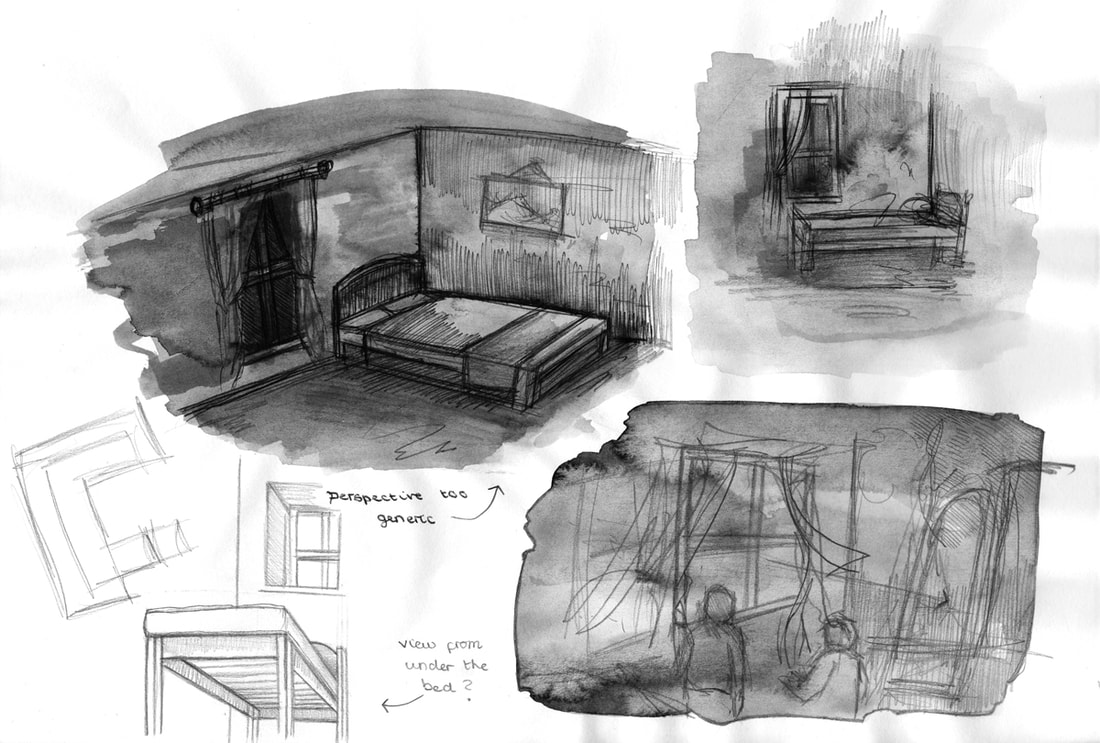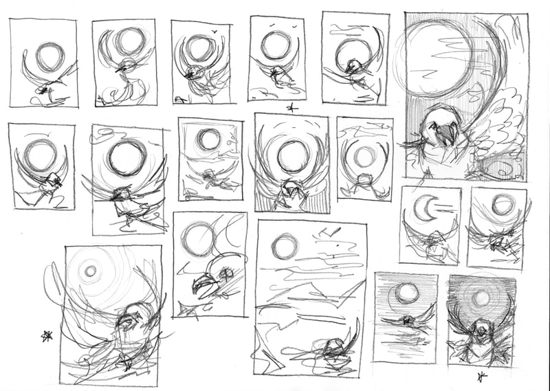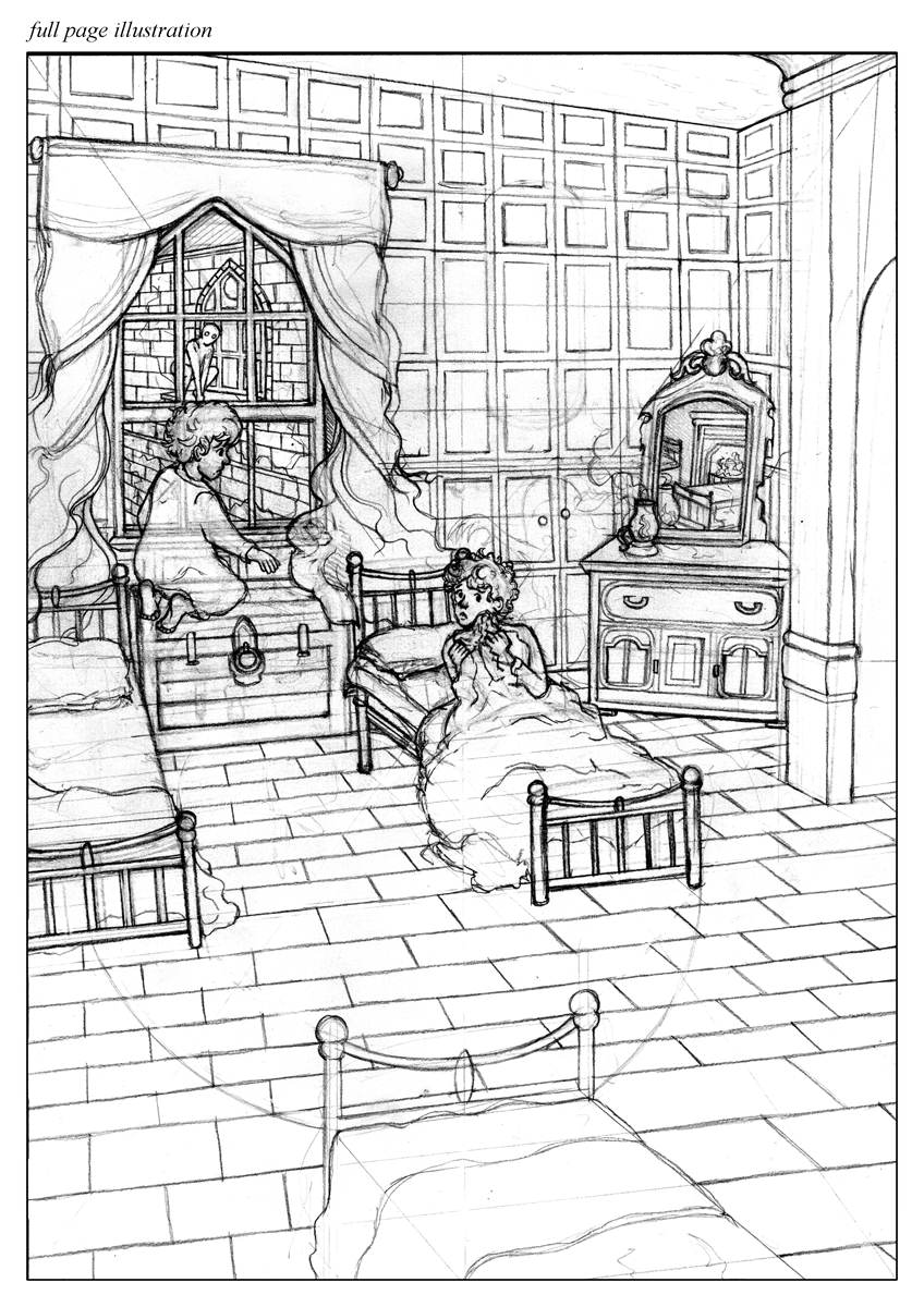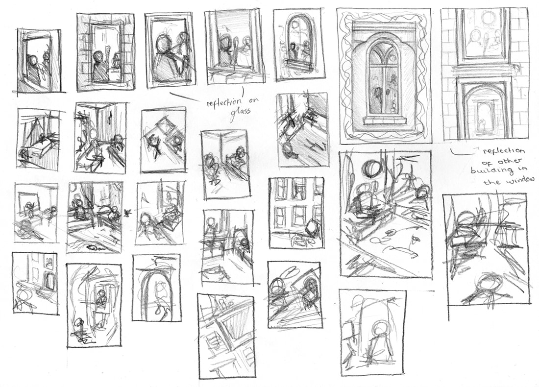 I also created some final quick thumbnails to work out the composition and perspective of the illustrations, I found this helpful but I think I will move this quick stage to the start of my project next time instead of it being at the end. Like Dwayne said you need to think with your pen, and get your thoughts on the page and that is what I plan to do in the next project.