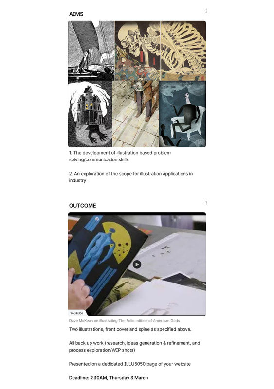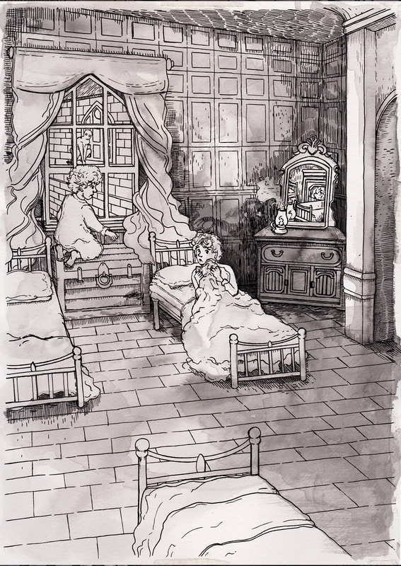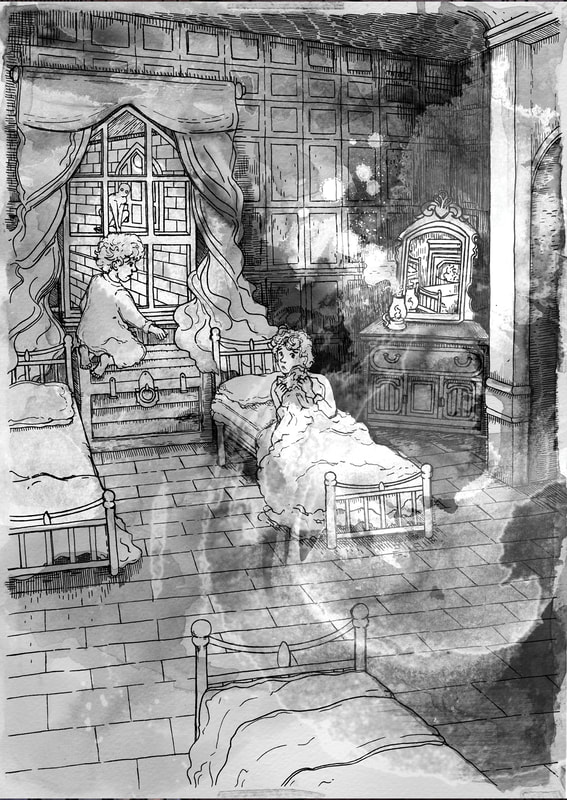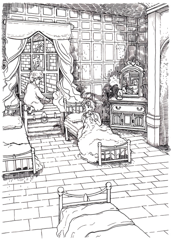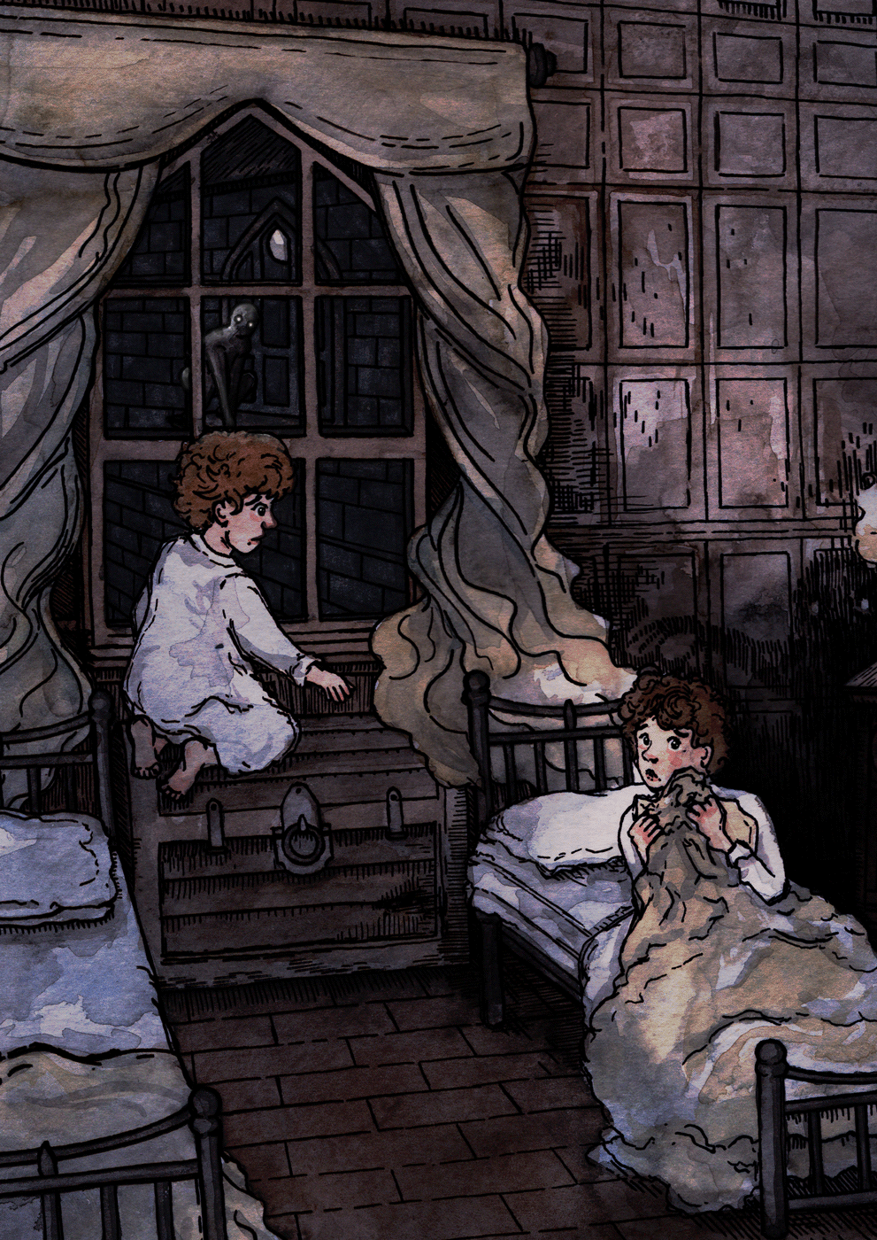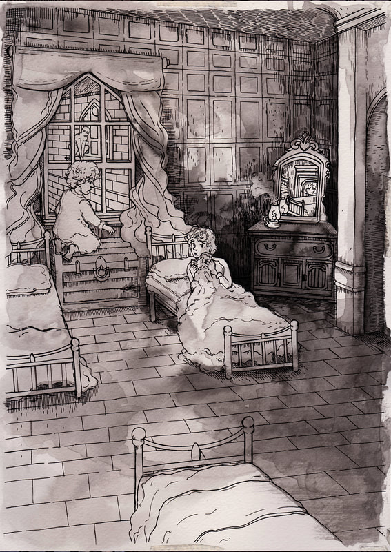 Final Full Page Illustration I like how my final illustration turned out, I think that the more blue hues in this illustration definitely add to the ghostly environment. I also tried to highlight the monster out of the window a bit more because I was unsure if everyone had noticed it during feedback. The story I was given for this project was "A School Story" by M.R. James, this is a story based in a boarding school so I chose to create the illustration in a more children's illustration style inspired by Enid Blyton. I think that it looks good and fits well with the actual story, as the story isn't very graphically scary it is more just an environment of unease and mystery. It my final illustration that I edited I overlaid a black ink painted layer over my watercolour illustration digitally, I think that this definably added contrast to my illustration that I did not have before. Overall I am very pleaded with how this illustration turned out, I am pleased that I got to work with perspective some more as I think the space at the front of the illustration actually adds to the feeling of unease. I am also pleased that this illustration seems spooky but it doesn't overtly give everything away which is what I wanted. As I want the illustration to compliment the story without giving away all of the content of the story. |