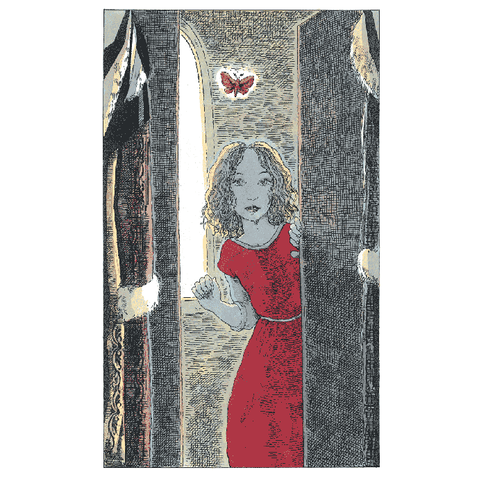 Before I moved onto creating my final illustrations I sketched out two possible combinations, which I coloured digitally. I like the red, black and white cover but I think that the background might look better as black with white and red accents. I think that more natural colours work better for the full page illustration, I would prefer if I could make this illustration black and white like the vignette.