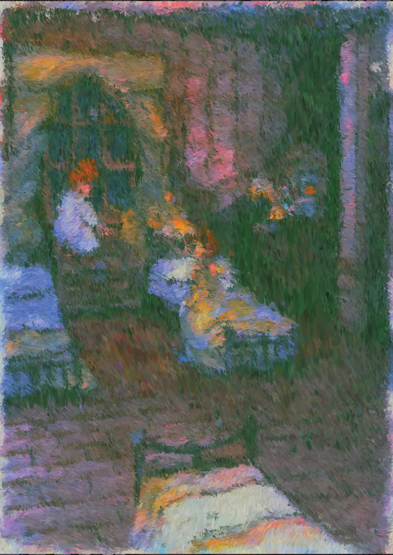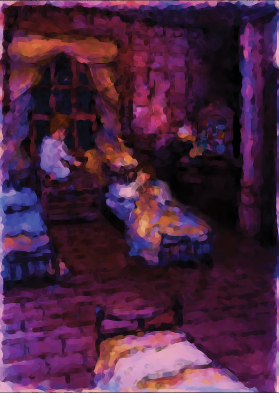 Following the formative feedback I decided to try and make my final illustration creepier looking, Dwayne said it looked too "jolly" so I tried to darken the colours to make the image have a more ghostly appearance. I like some of the more experimental edits of this illustration however I don't think that they work very well in the context of this story.