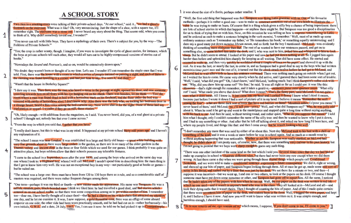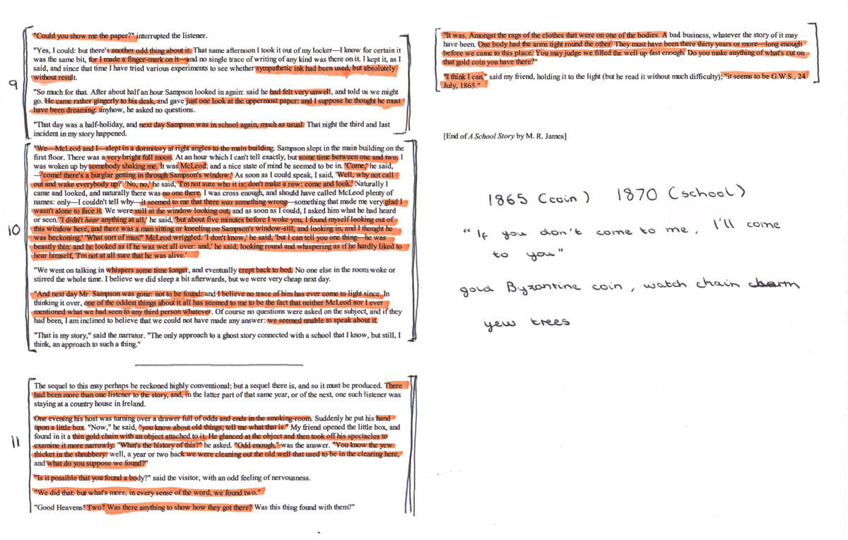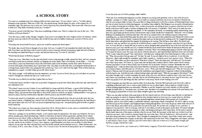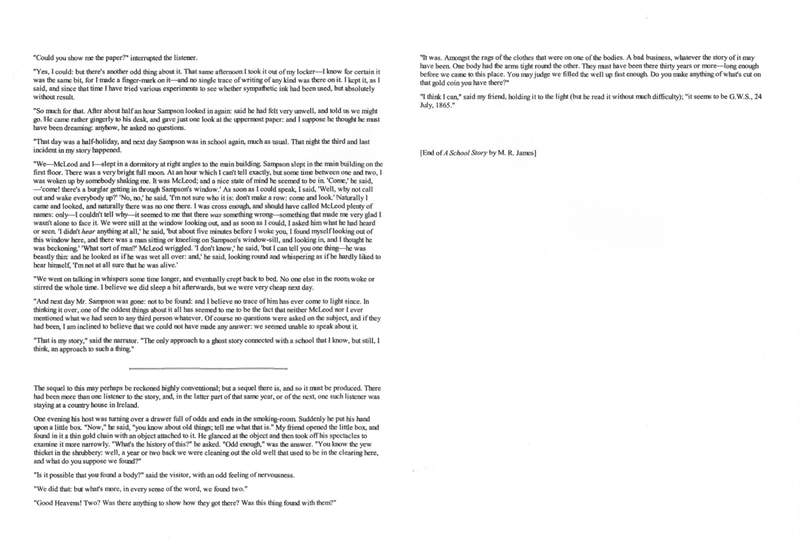 This is a dramatic reading of "A School Story" by M.R.James that I found on YouTube, as well as the overall text and the parts of the text that I found the most interesting.