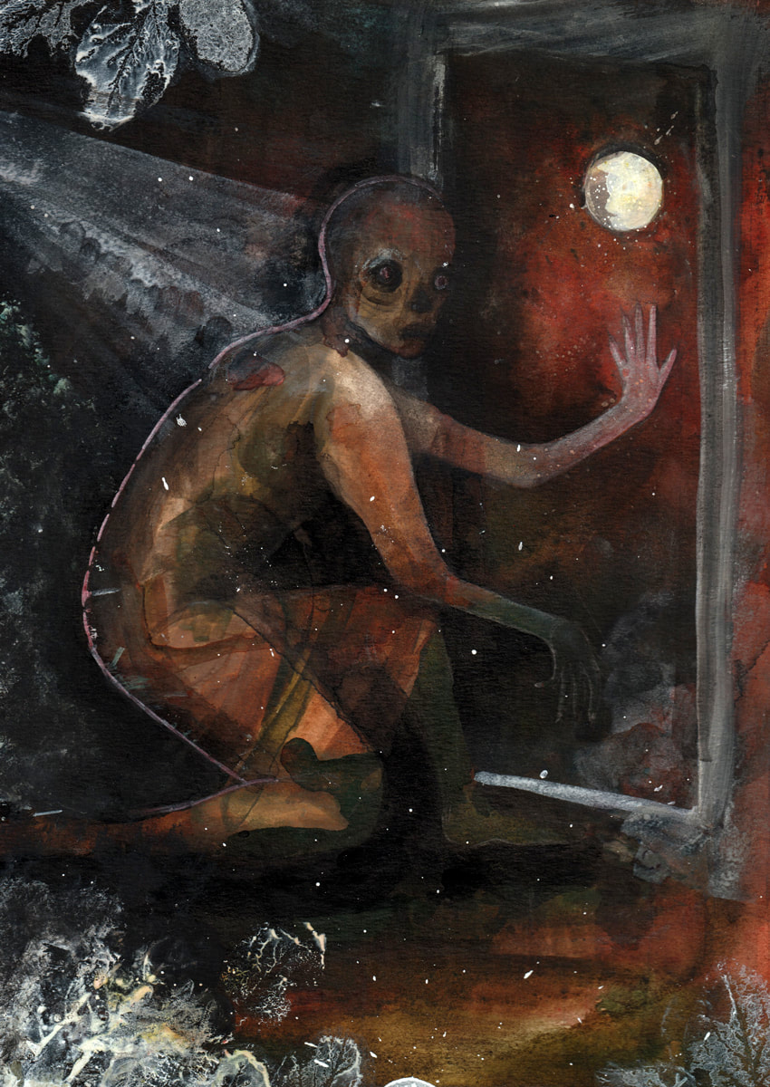 After Dwayne's feedback that my original final illustration was not scary enough I tried to create an illustration that was more outwardly spooky, but I just don't like it as much.