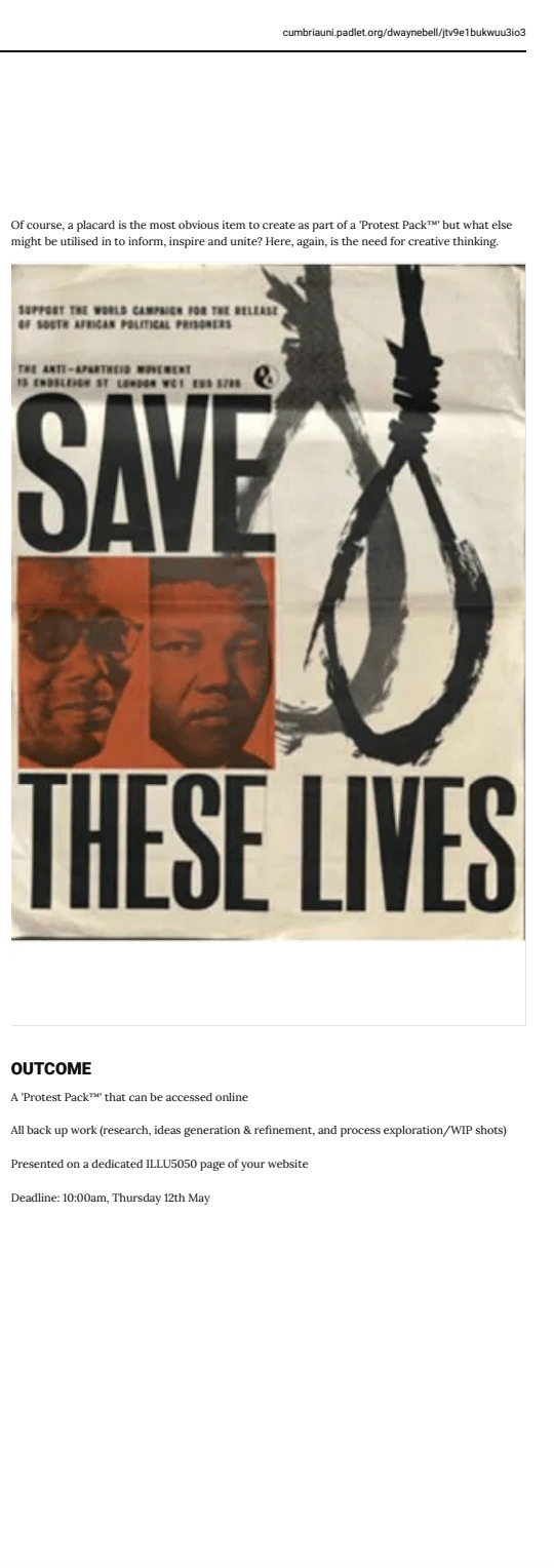 I used these three pages to try and decide what to include within my protest pack, the page on the right definitely helped me to decide what colours to use for my protest pack.