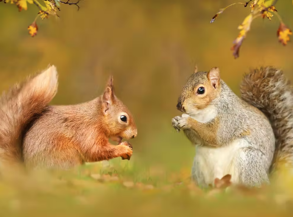 "There are two species of squirrel in the UK; red squirrels and grey squirrels. Populations are currently estimated at approximately 140,000 red squirrels and 2.5 million grey squirrels. Red squirrels are our native species and have lived in the UK for around 10,000 years, Grey squirrels were introduced to the UK from North America by the Victorians in the 1800s, the first record of them escaping and establishing a wild population is 1876. Why do Red Squirrels need protecting? Grey squirrels are a familiar sight for many people across large parts of the UK and are often seen in parks and gardens, whilst the range of our native red squirrels is now limited to certain areas of the UK, such as Anglesey, parts of northern England and Scotland. In many cases they have retreated to wilder, remote locations. Unfortunately, without conservation management, red squirrels could become extinct in England in approximately 10 years. Time is really running out to save our red squirrels. To preserve red squirrels, they must be kept apart from grey squirrels as the two species cannot live together long term. The map below illustrates this as it shows that grey squirrels have replaced red squirrels across almost all of England and Wales." |