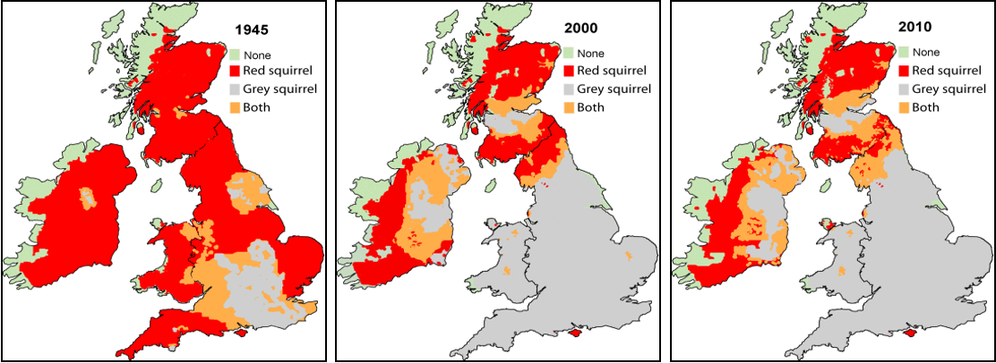 Only around 287,000 of the UK’s red squirrels remain in various strongholds, with Scotland being home to around 75% of the population. (Distribution)