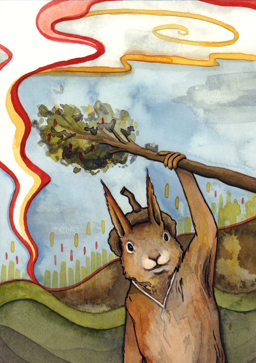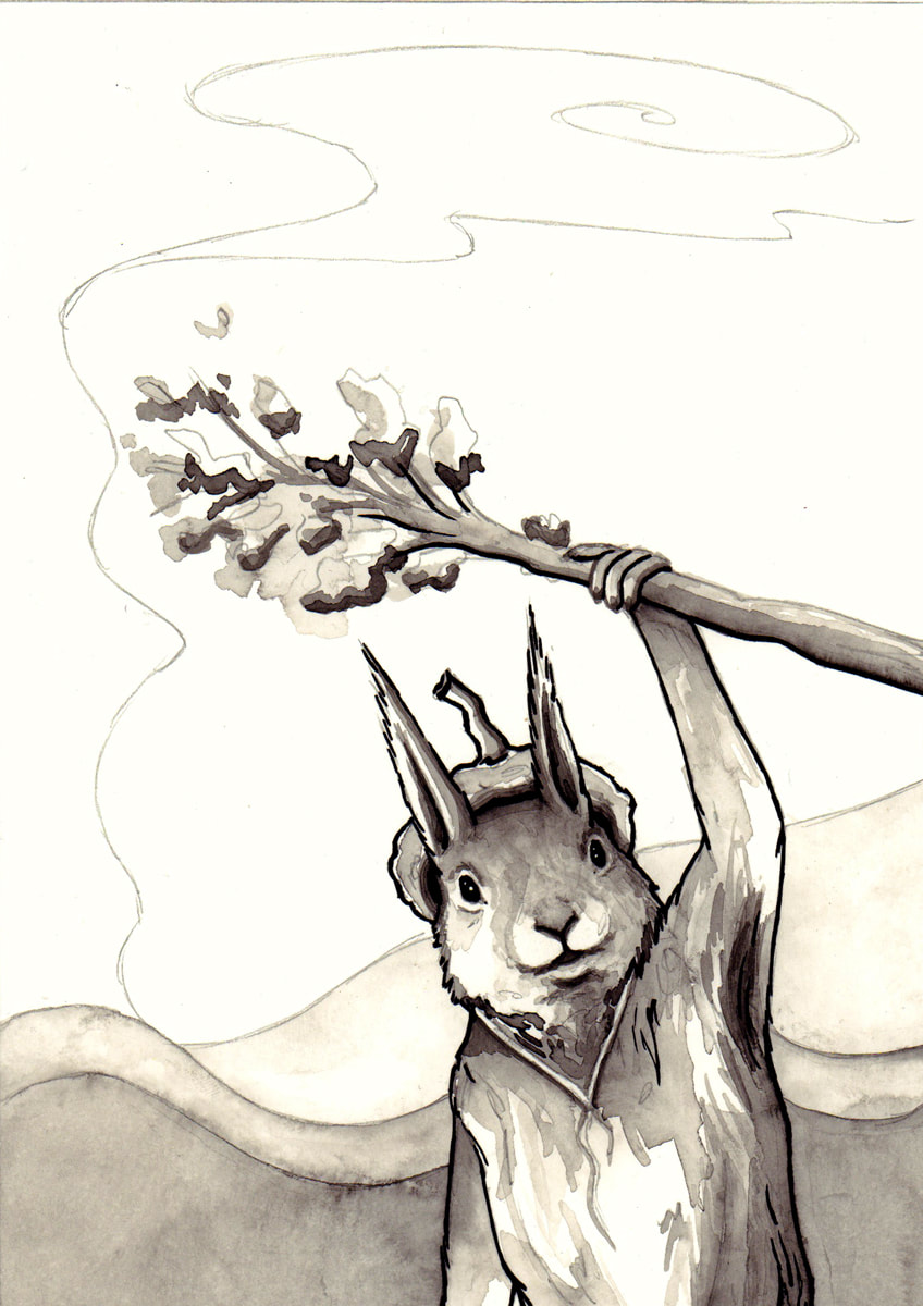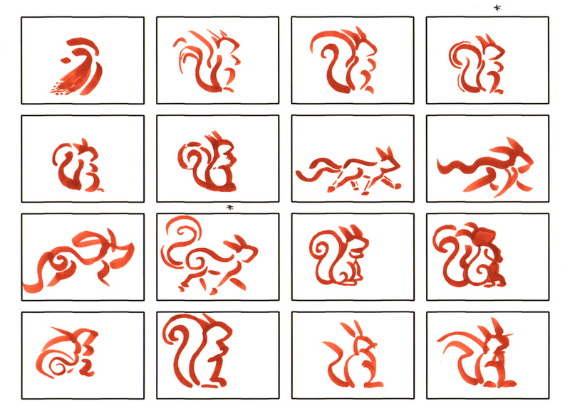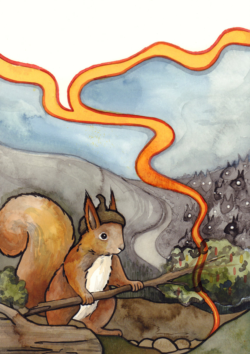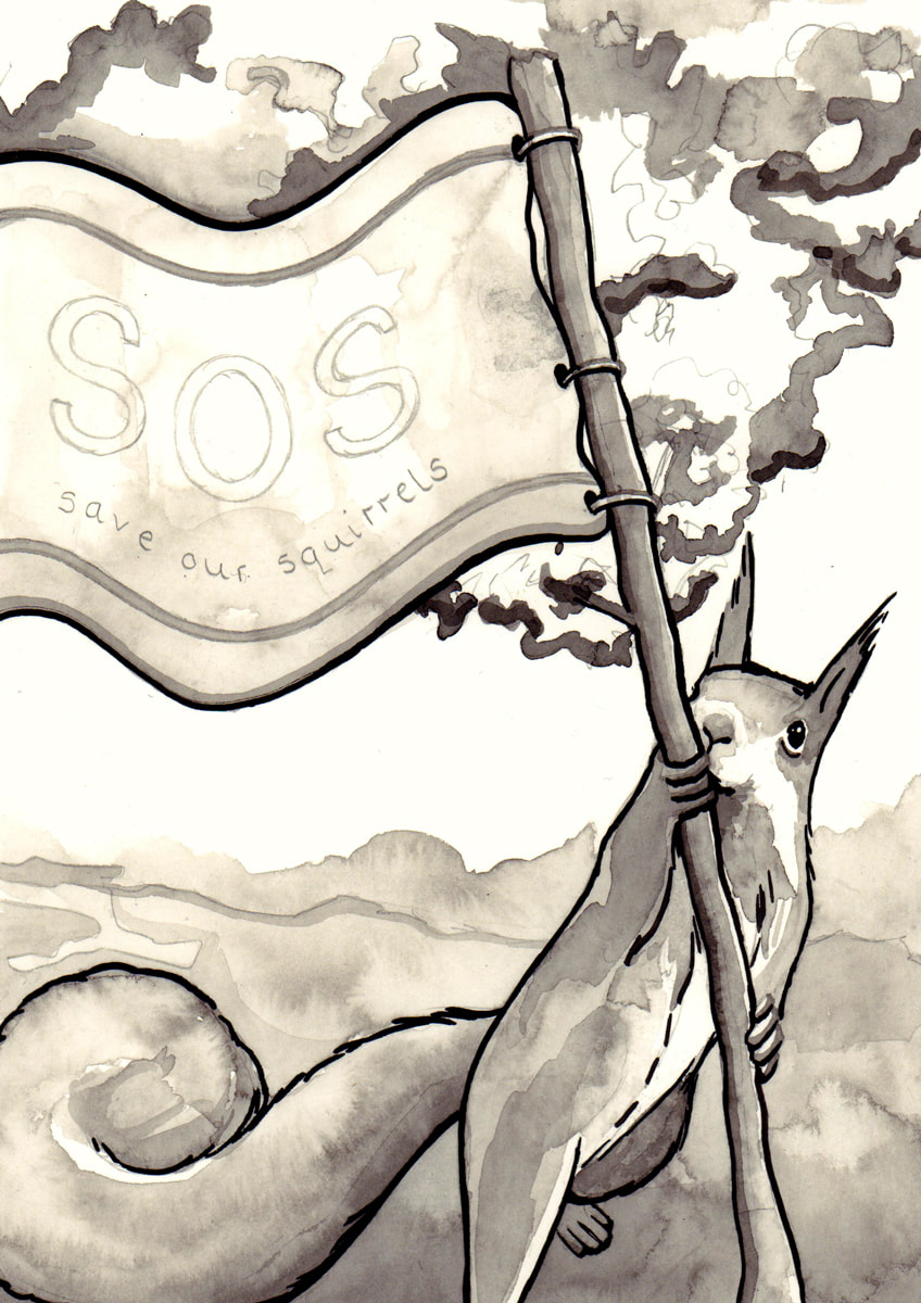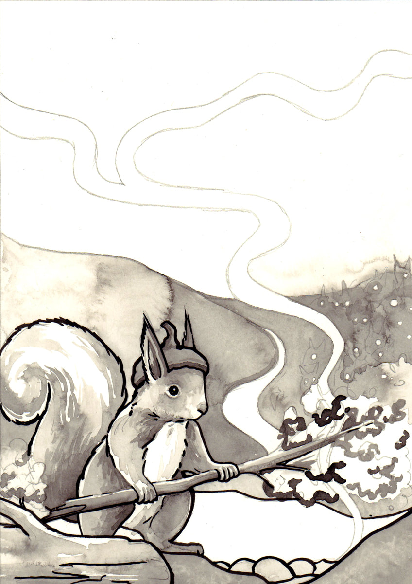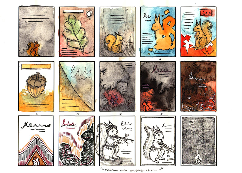 I started these poster by giving them a black ink wash and lines to try and get close to the style of the the Vietnam War Propaganda posters, I found it interesting to try and create squirrel paintings in this way when usually I would make them very cute and fluffy whereas this time my aim was to make the sleeker and more powerful and grounded in the page.