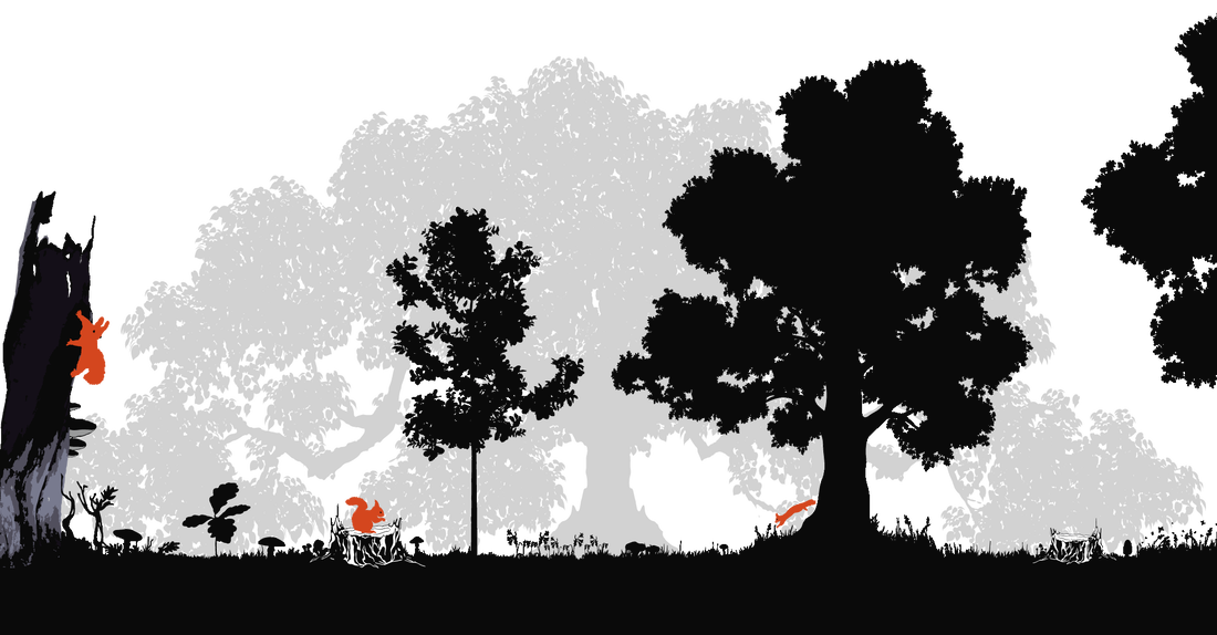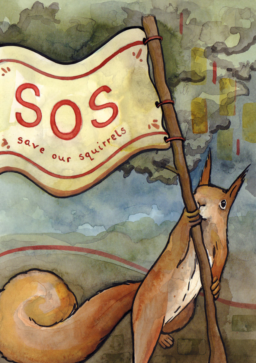 For this project I create three concepts that I could take forward within the final protest pack. This design would be based around the contrast between orange and blue, it is forest themed focusing on the destruction grey squirrels cause to the red habitat and in turn the damage that this does to our environment. I really like this style however it my not be the mot effective way to get across the importance of Red Squirrels.