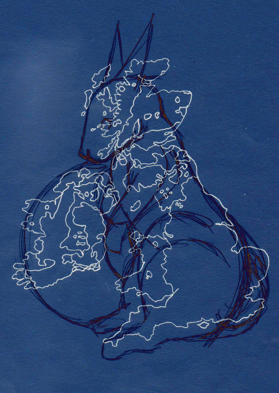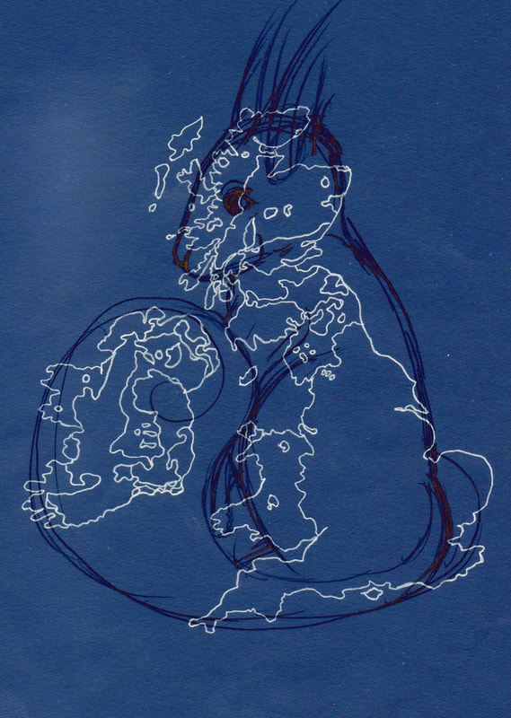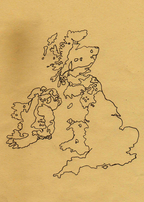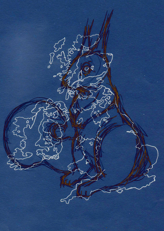 I wanted to try and combine the shape of the map of the UK with the shape of a red squirrel but it turns out that is a very complicated thing to do. The shapes don't fit together well so it becomes quite confusing when trying to overlay the map and the squirrel together.
