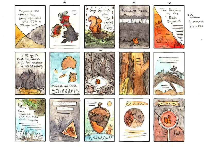 For this project I have decided to focus on the conservation of Red Squirrels, they are my favourite native British animal and they mean a lot to me. Therefore the decline in numbers of reds and an increase in grey squirrels is incredibly important to me. Most recently I have noticed that there are grey squirrels at the University of Cumbria campus, then only a few miles away there is s a red squirrel crossing sign. Reds and Greys cannot coexist in the same environment therefore I think we need to raise awareness for Red Squirrel's in the Carlisle catchment area to prevent them being wiped out in this area which would be an absolute tragedy.