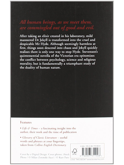 "Strange Case of Dr Jekyll and Mr Hyde by Robert Louis Stevenson is a narrative about the complexities of science and the duplicity of human nature. Dr Jekyll is a kind, well-respected and intelligent scientist who meddles with the darker side of science, as he wants to bring out his 'second' nature.