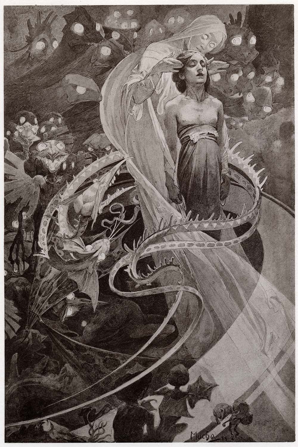Moving onto Mucha, I researched this artist because I have always admired the way he composed his art. This is something that I am looking to incorporate into my final book jacket designs.