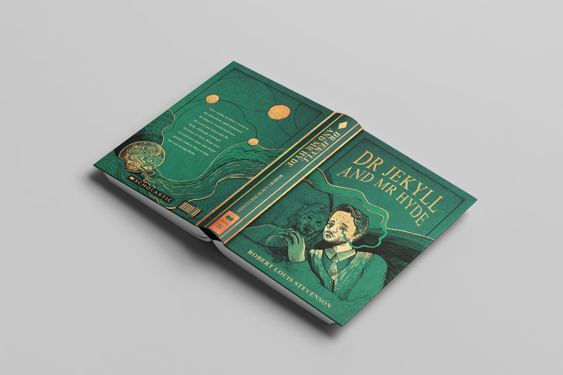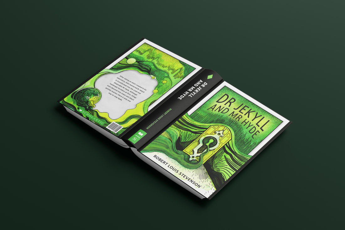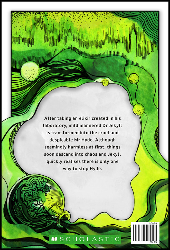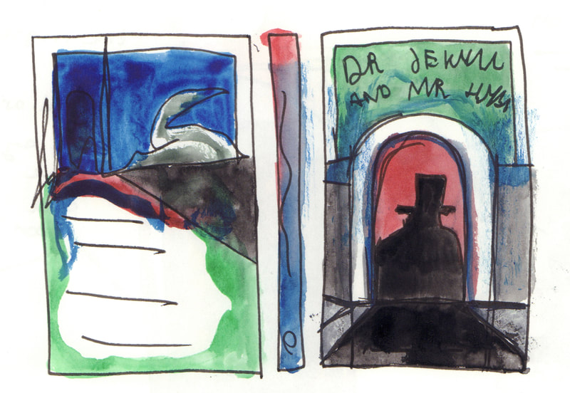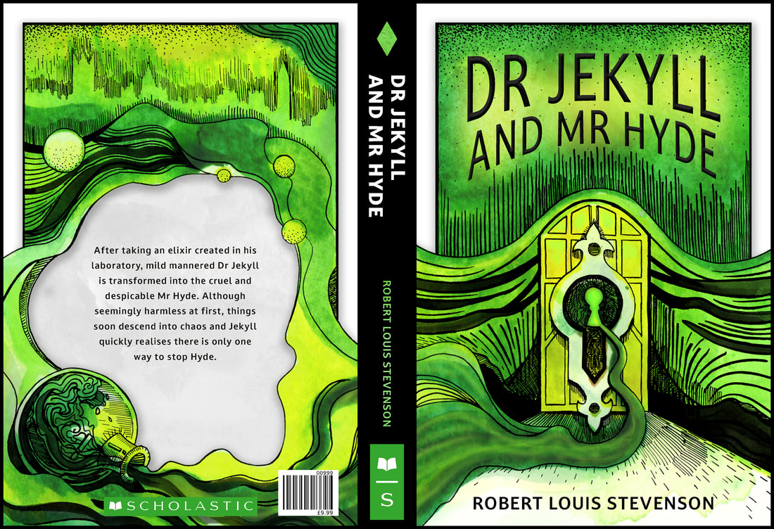 inking it in I didn't like how it looked at all. The closer portrait view of Dr Jekyll and Mr Hyde worked lot better, and finally I was happy with the book design.